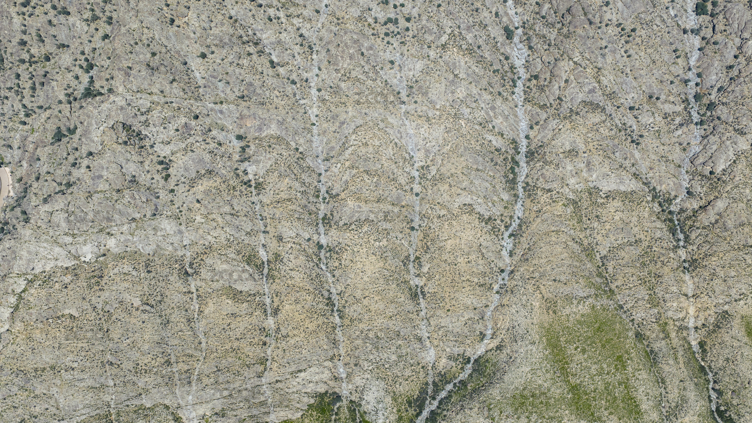 阿坝理县理小路玉兔峰附近山体被冲刷的痕迹
