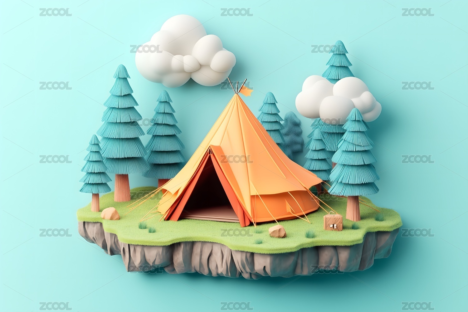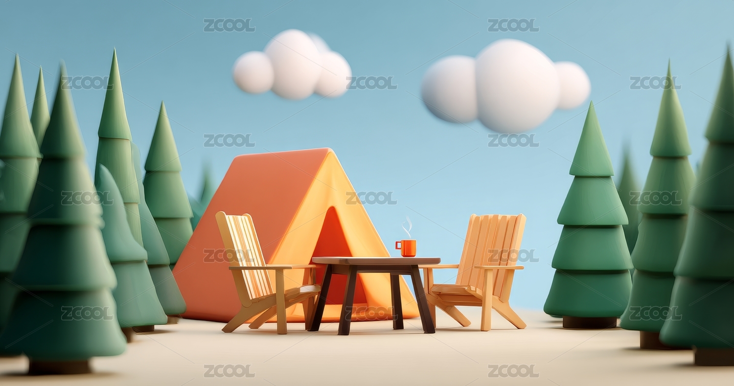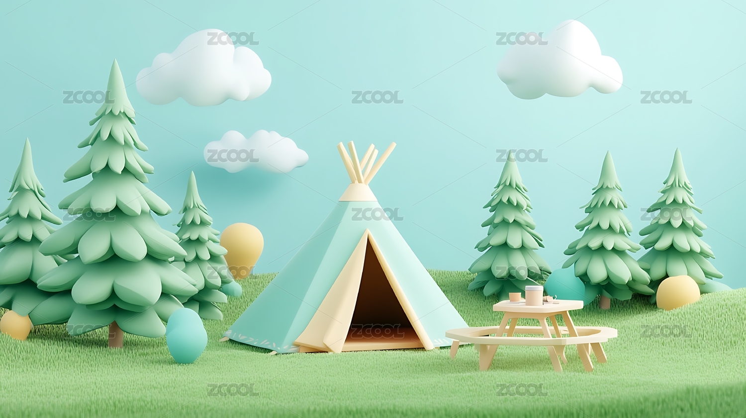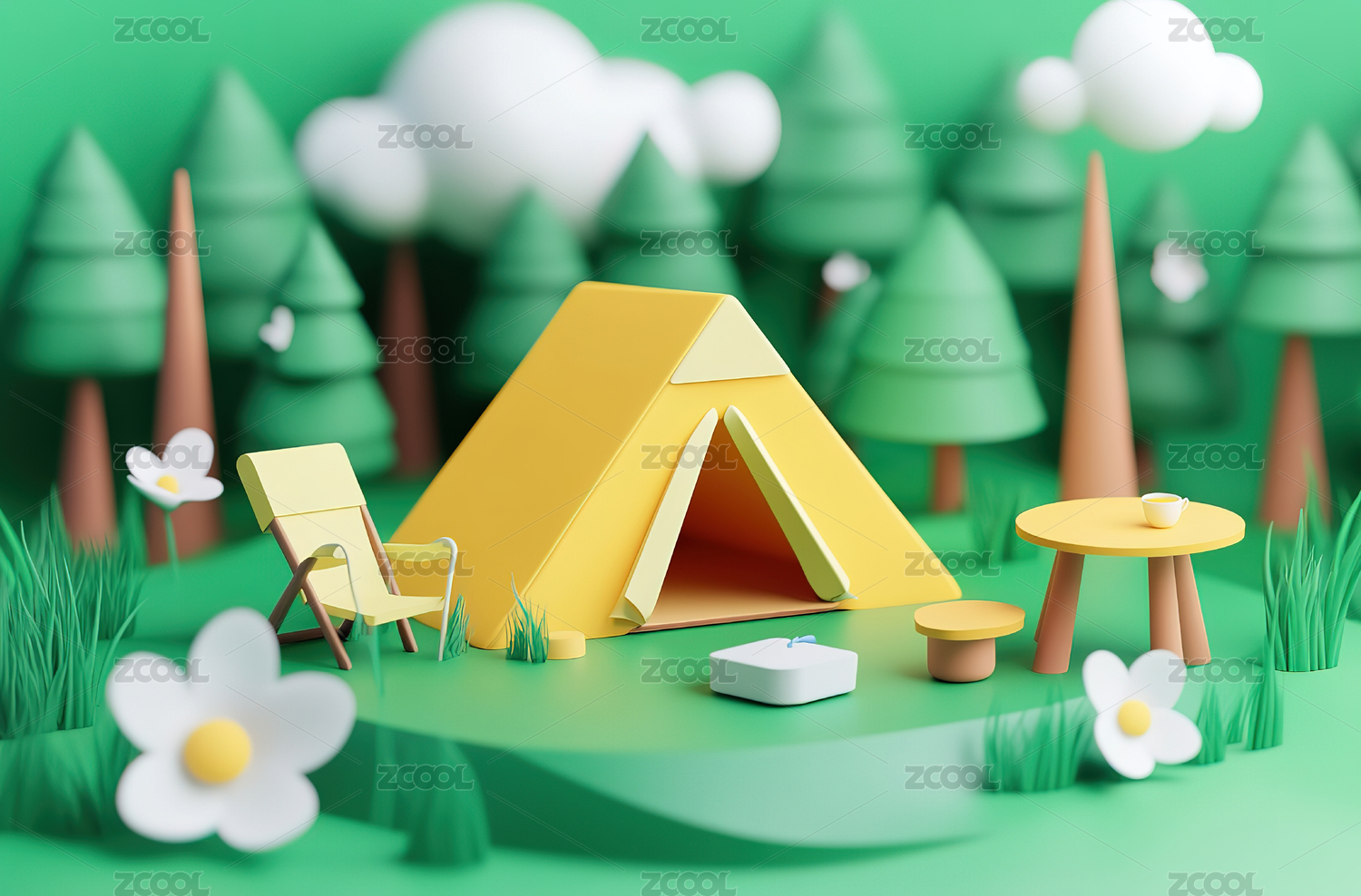 田园, 树木, 绿色, 自然, 清新,卡通, 简约, 粉色,3D,三维