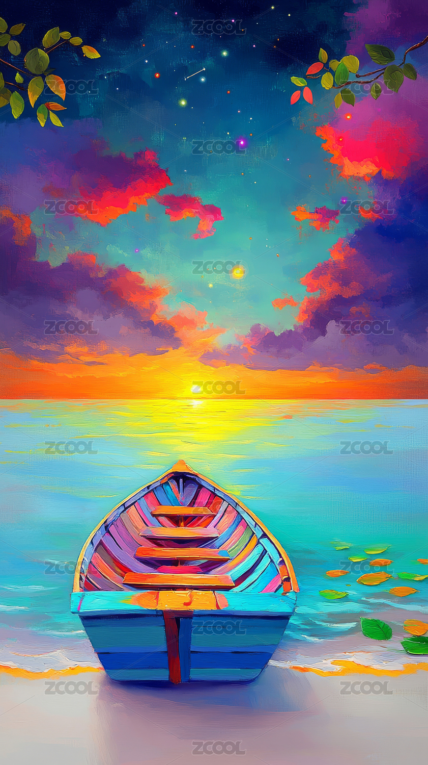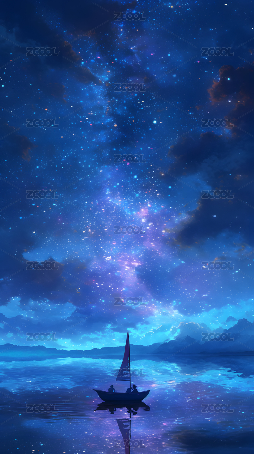 星空下的小船插画