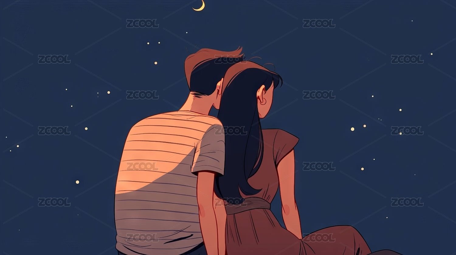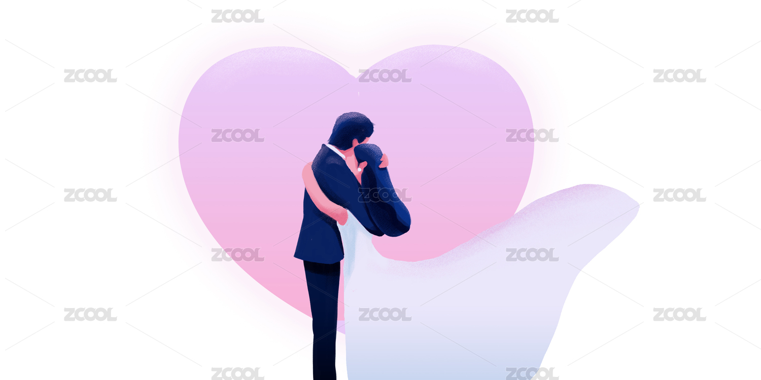 情人节,情侣恋爱相互依偎幸福温馨扁平矢量插画