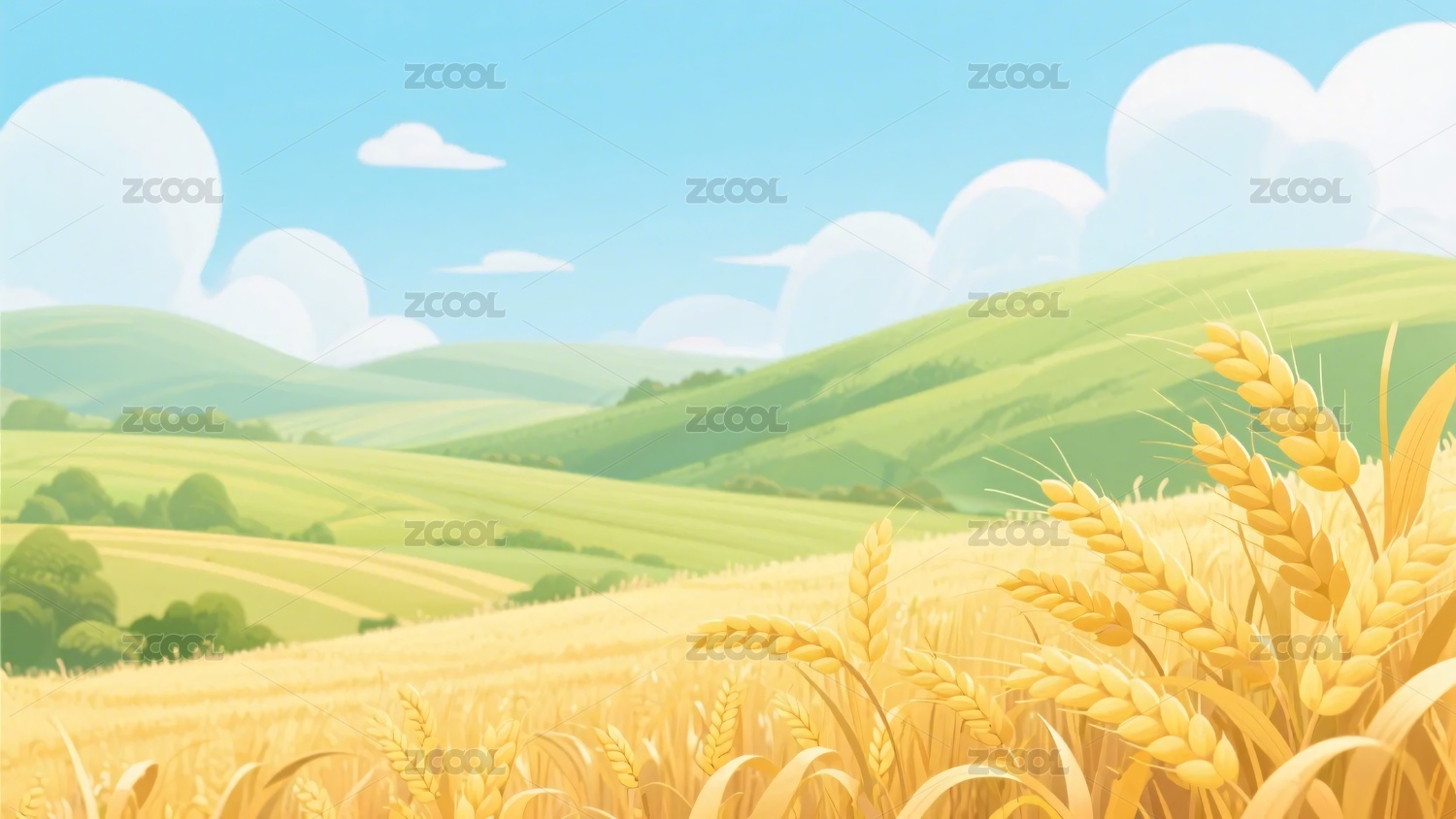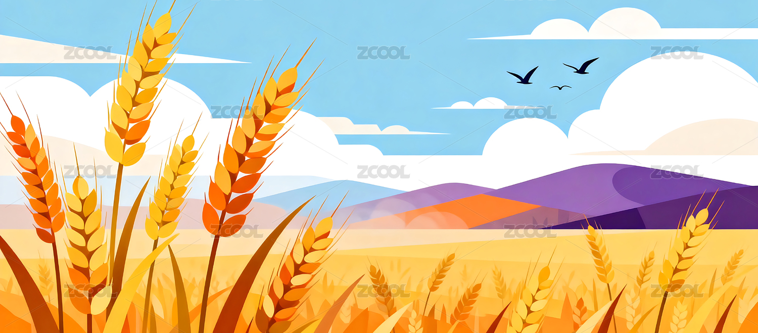 小满节气麦穗成长插画夏天农田麦子生长海报