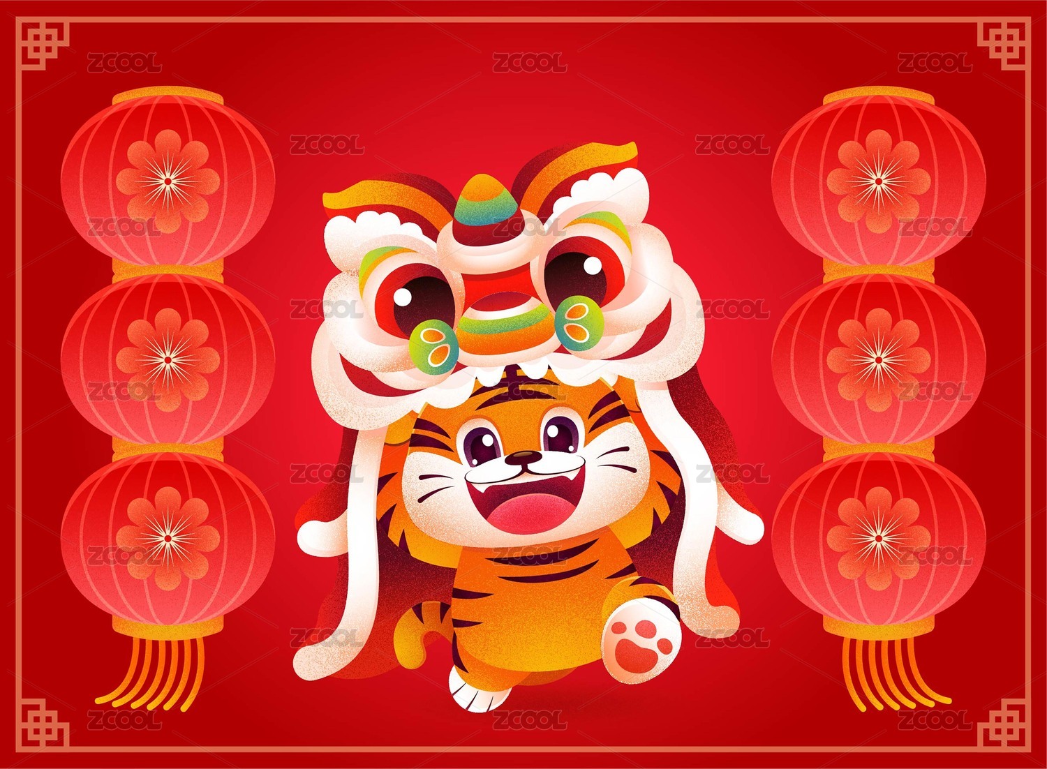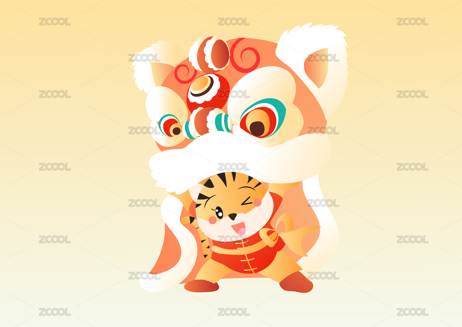舞狮,醒狮,国潮,传统文化,老虎,虎年,新年,春节,新春,卡通