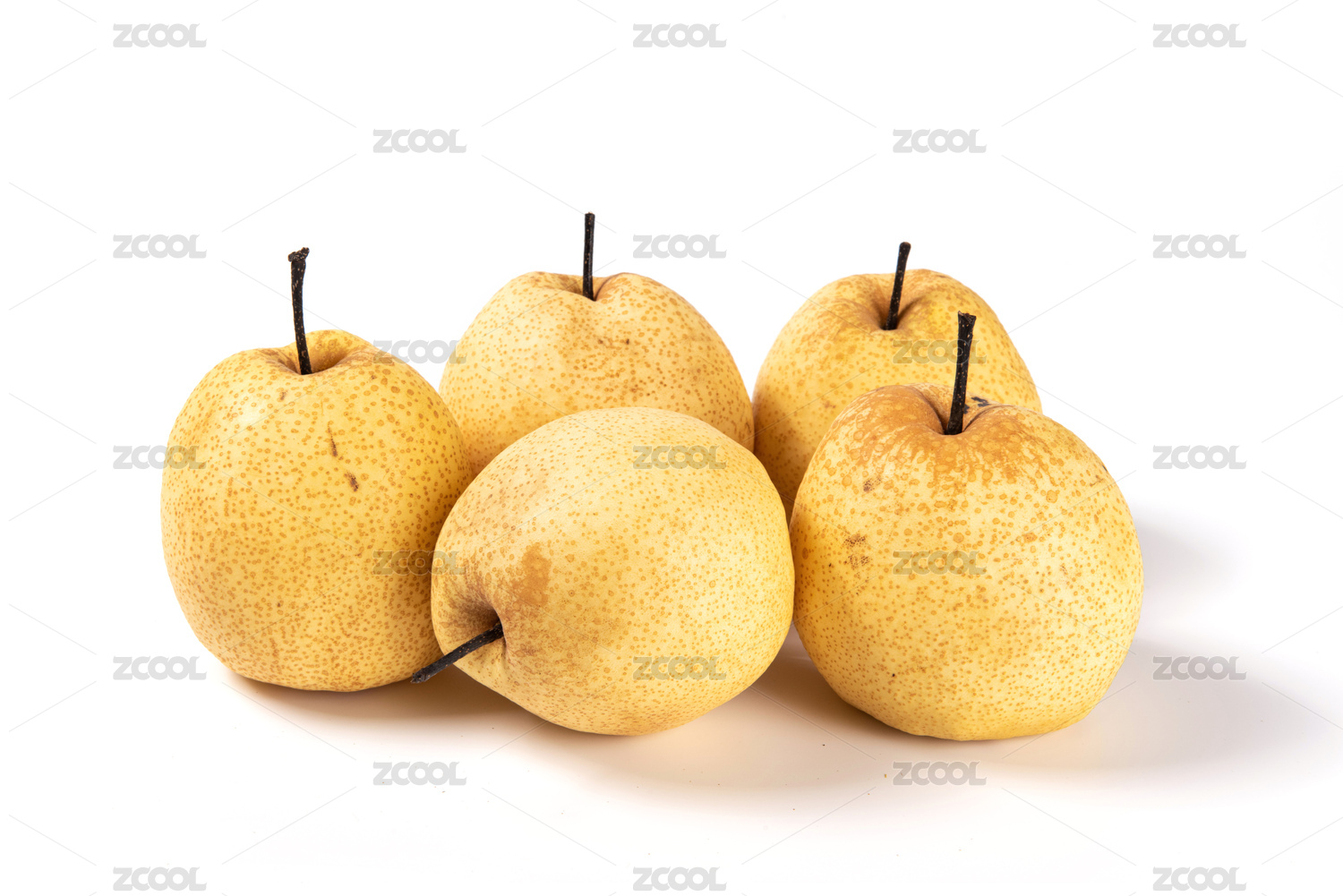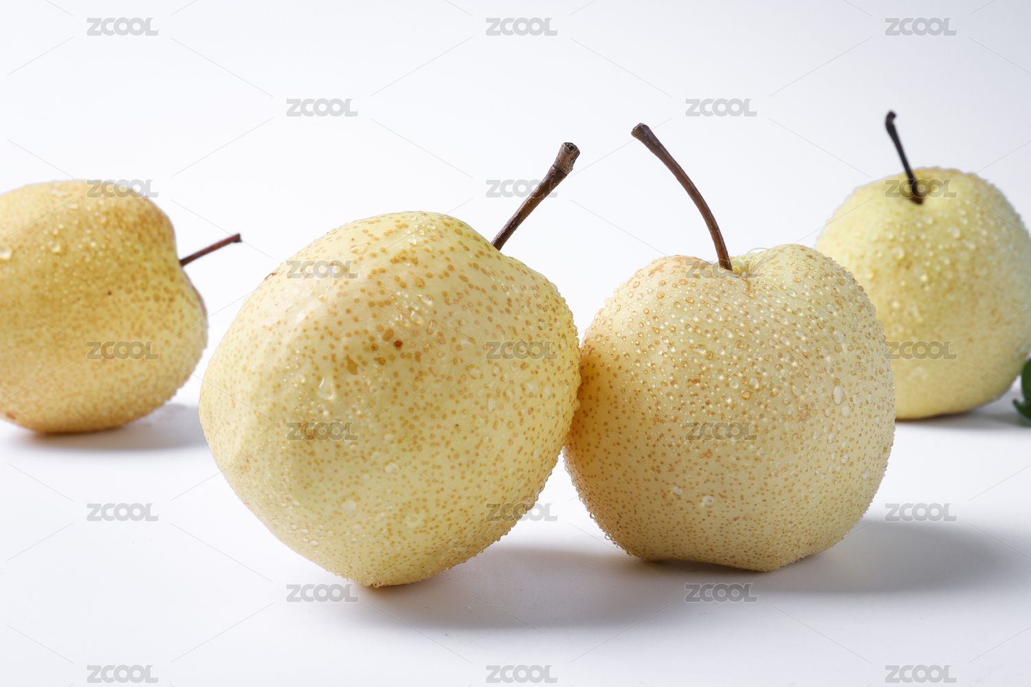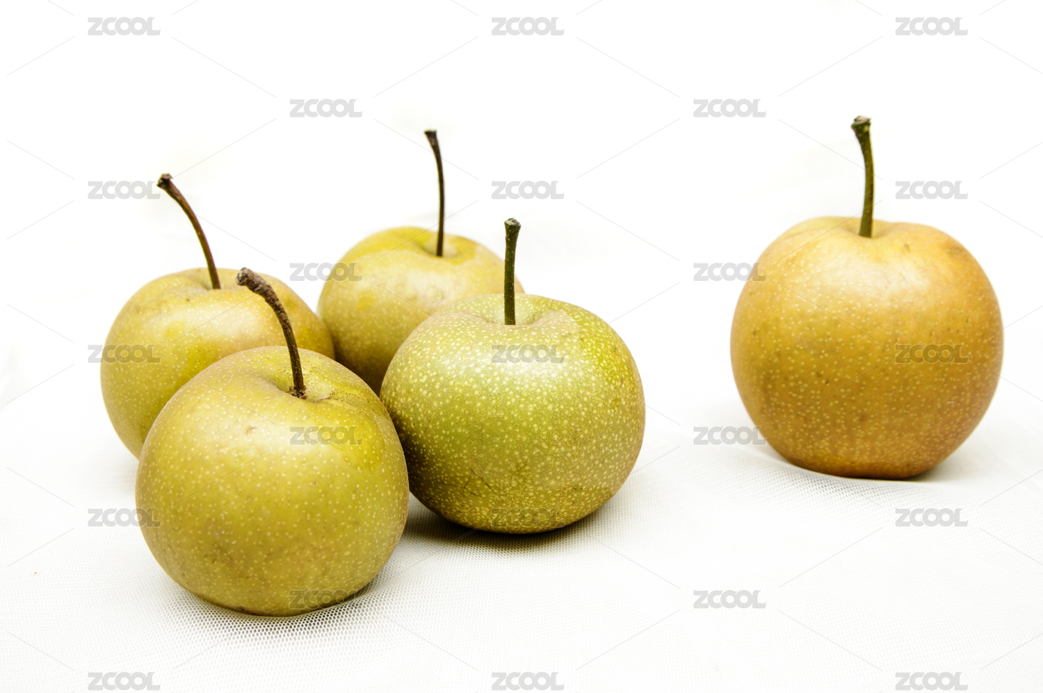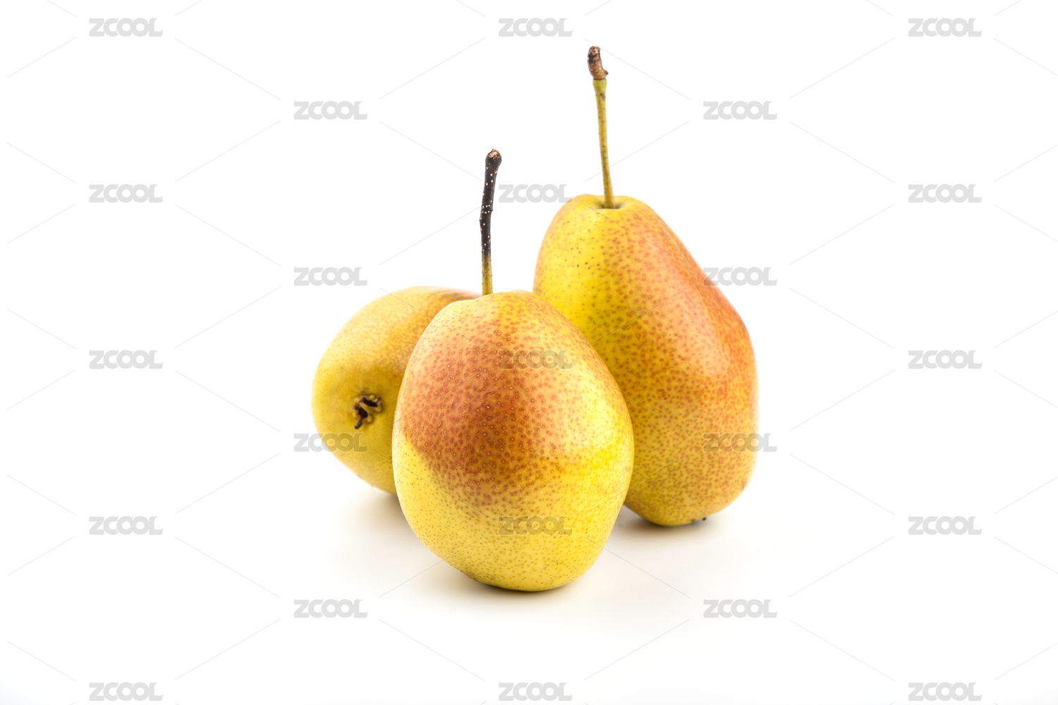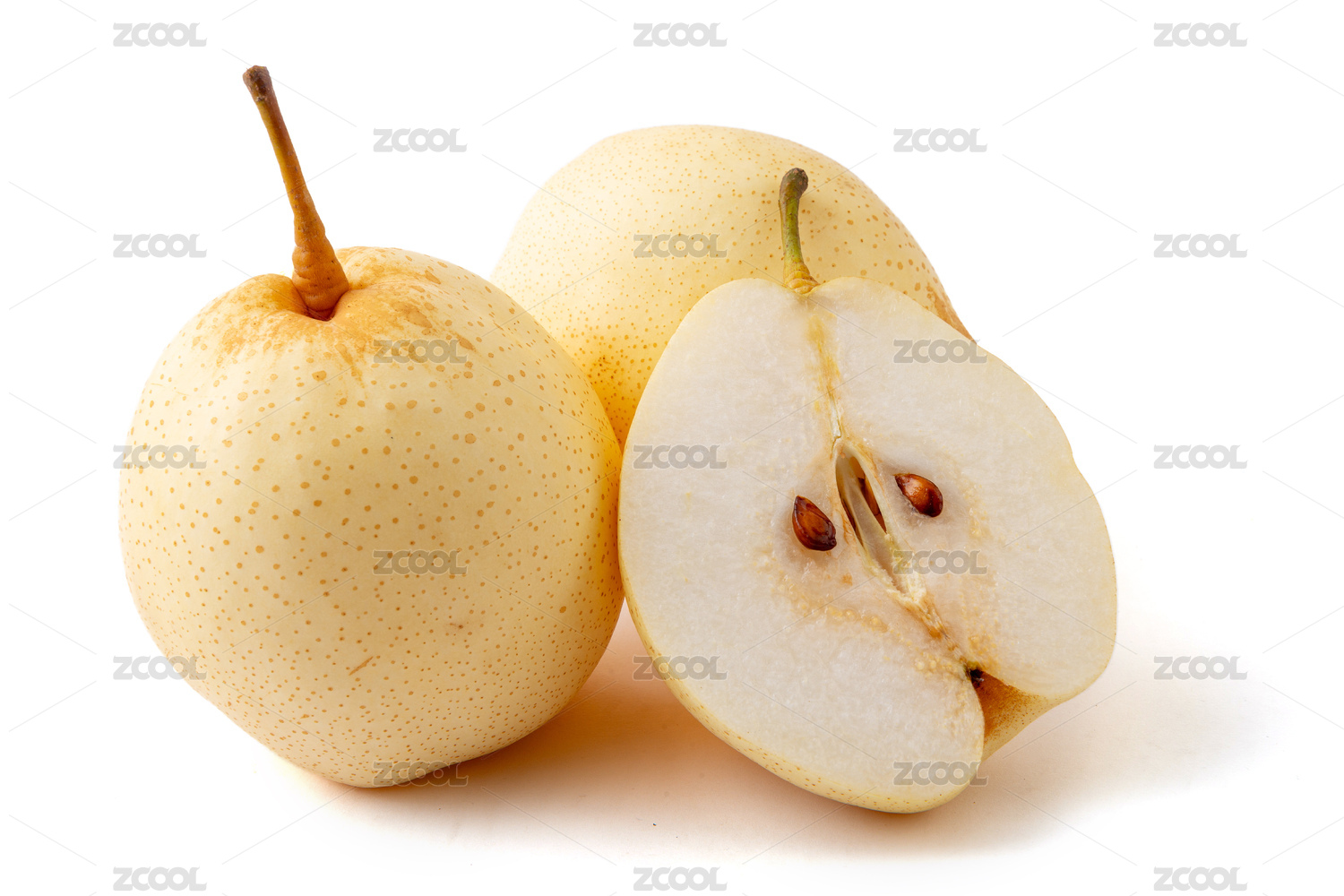 白底上放着三个完整的雪梨