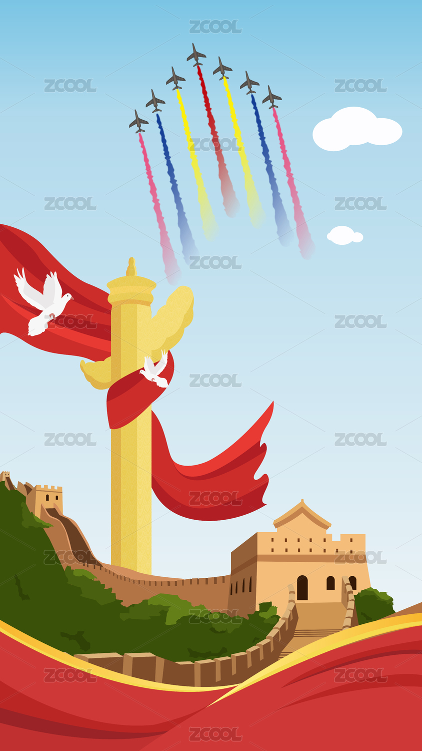 阅兵,国庆,国庆节,长城,万里长城,城墙,建筑,中国长城,飞机,七彩