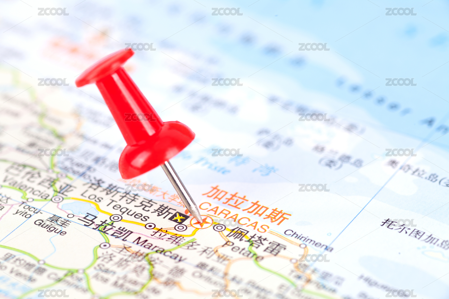 一枚大头钉在地图上标注巴拿马首都巴拿马城的位置