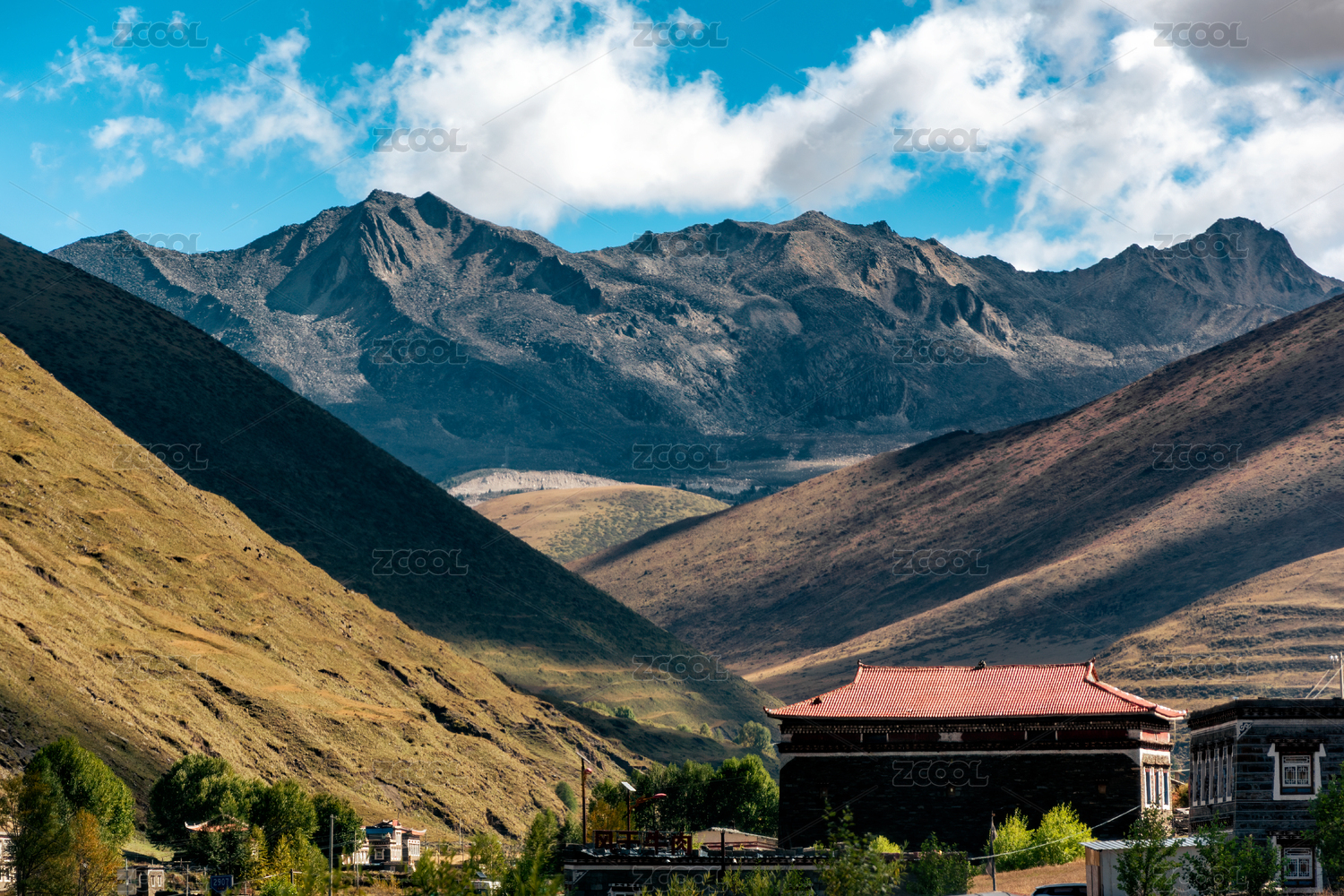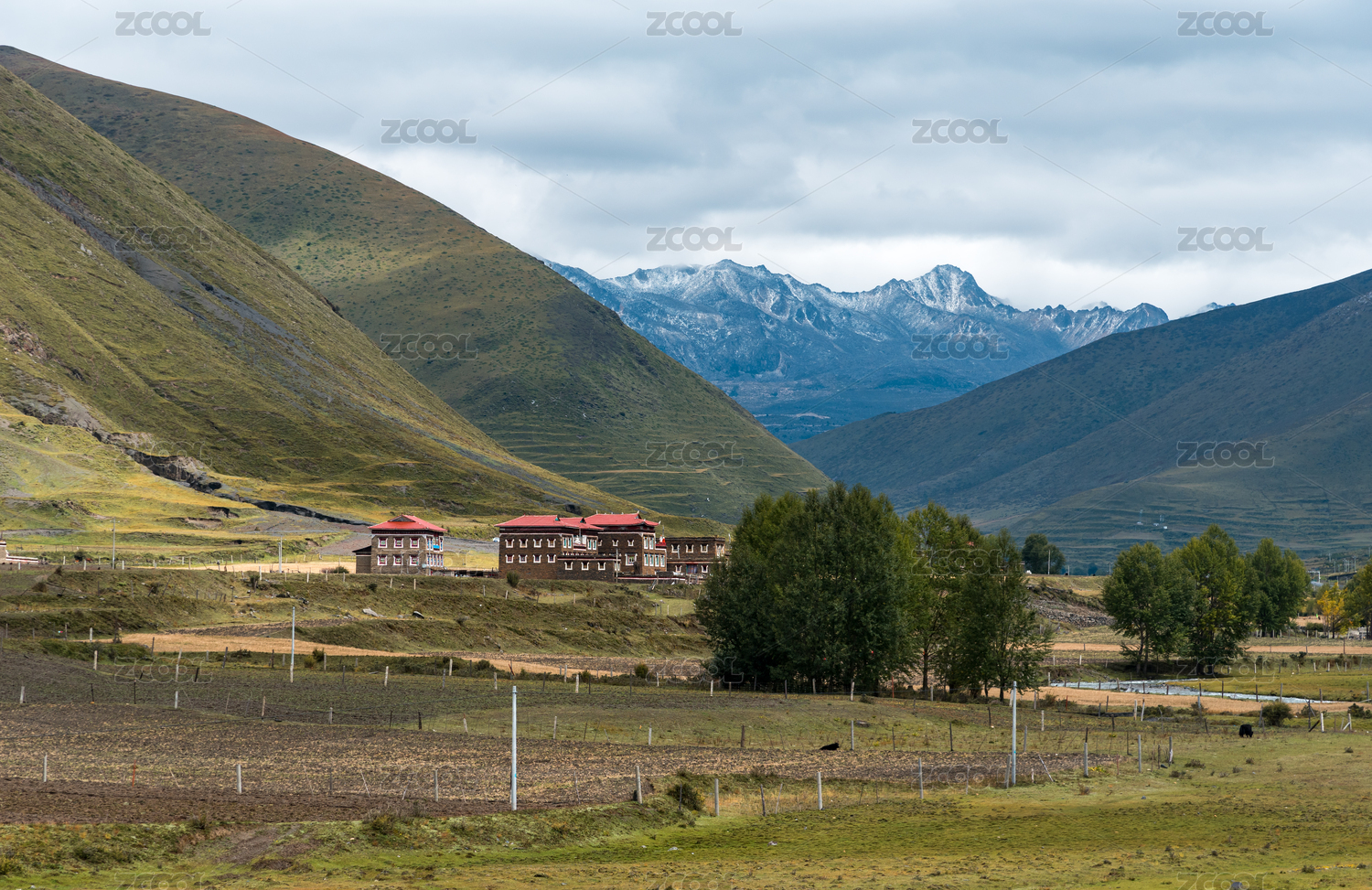 四川甘孜州折多山下新都桥的藏族乡村风光