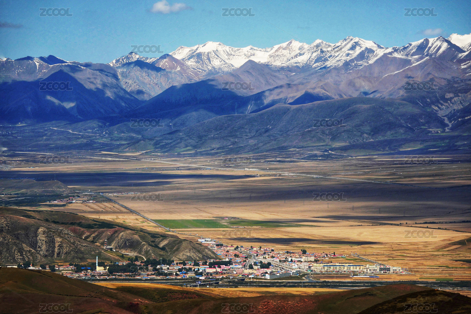 中国四川新都桥塔公草原蓝天白云雪山高原风光
