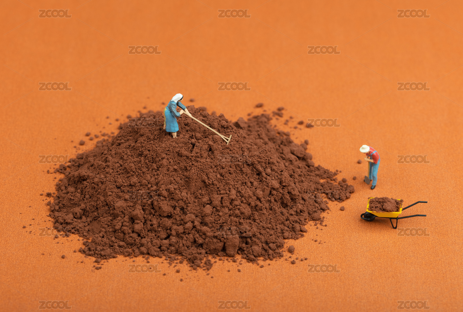 巧克力可可粉橙色背景与劳作的工人