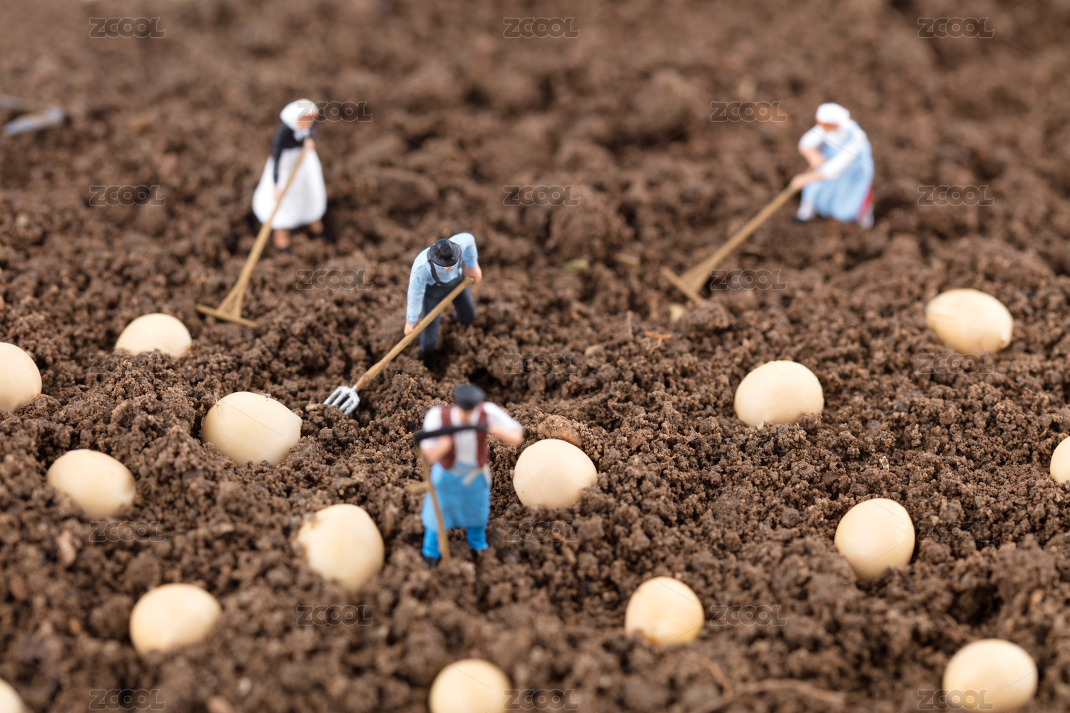 土地上劳作的农民人偶
