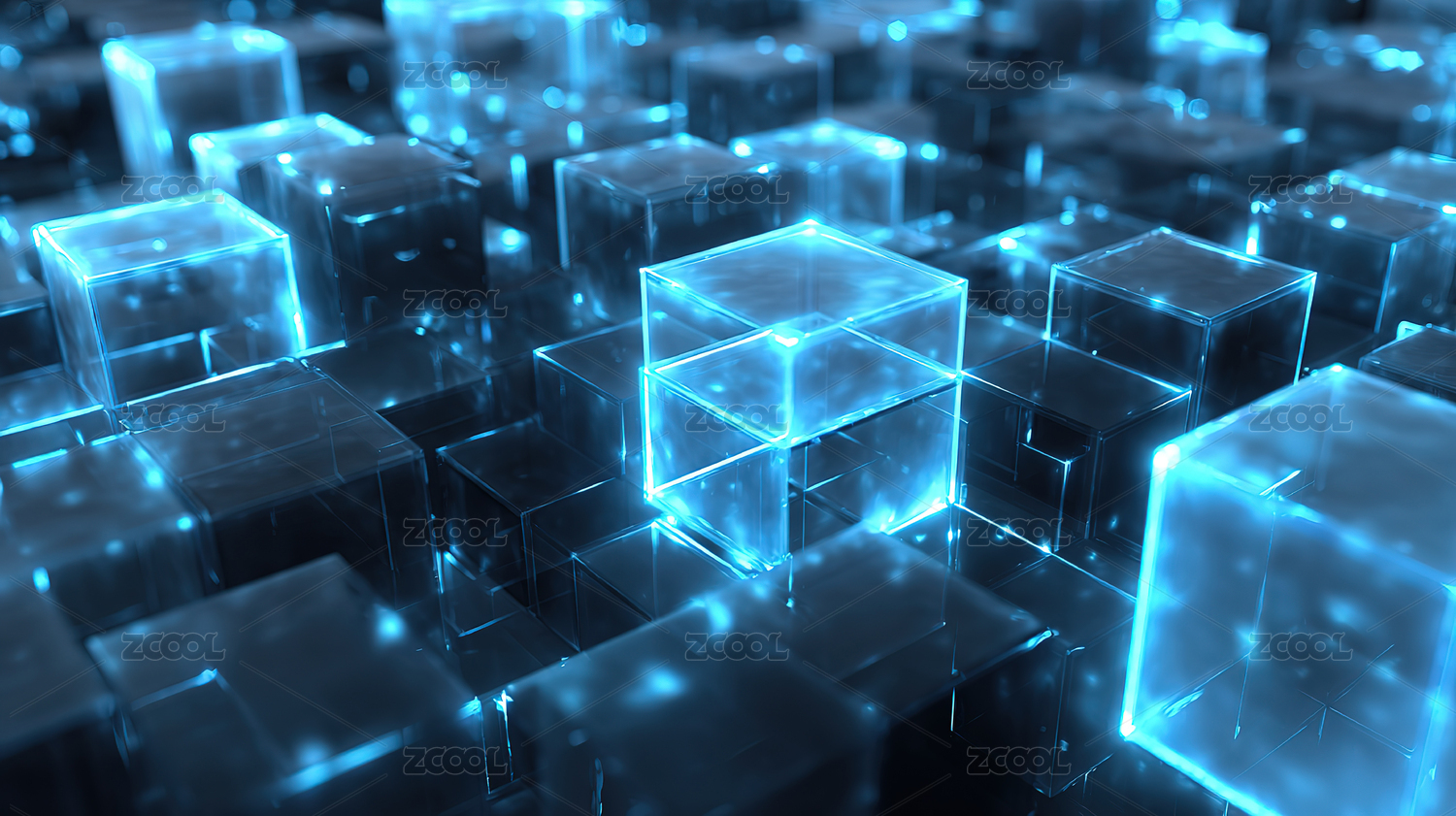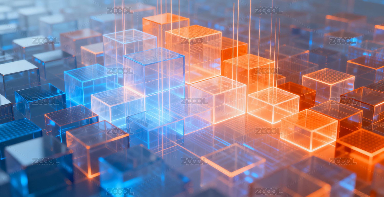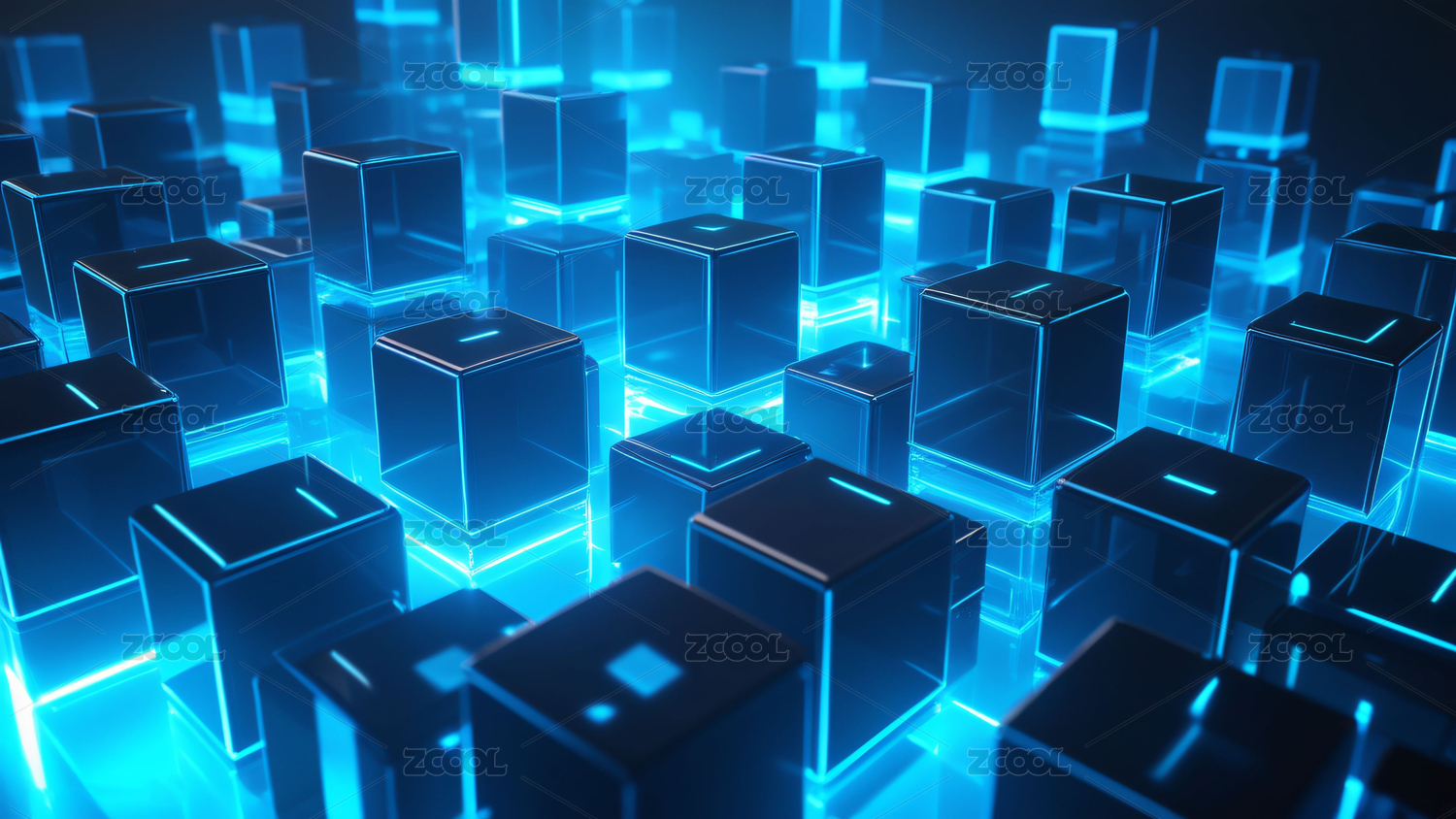 几何抽象科技背景,随机起伏的方块组合的类似芯片电路的背景。