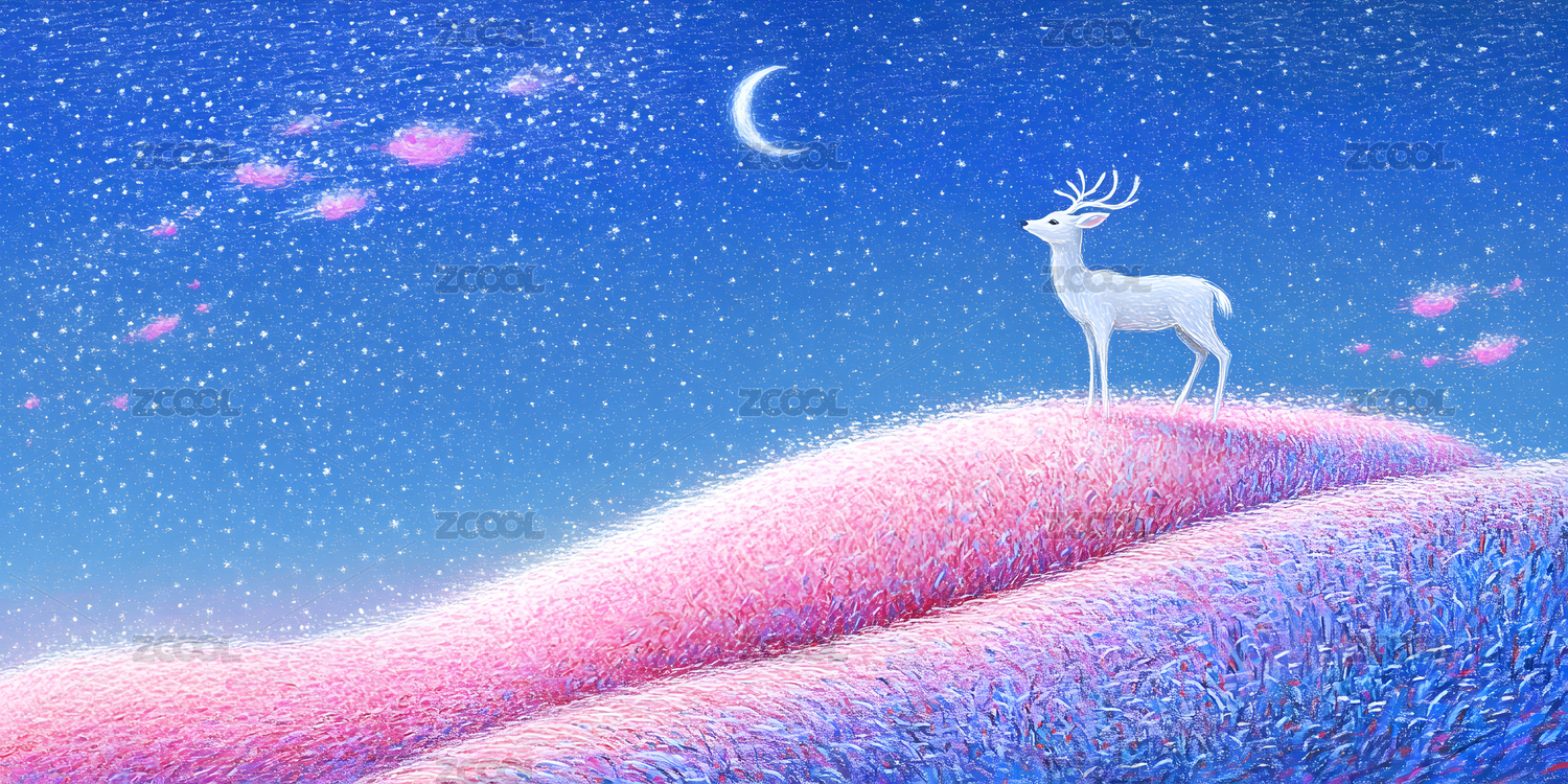 梦幻星空下的鹿