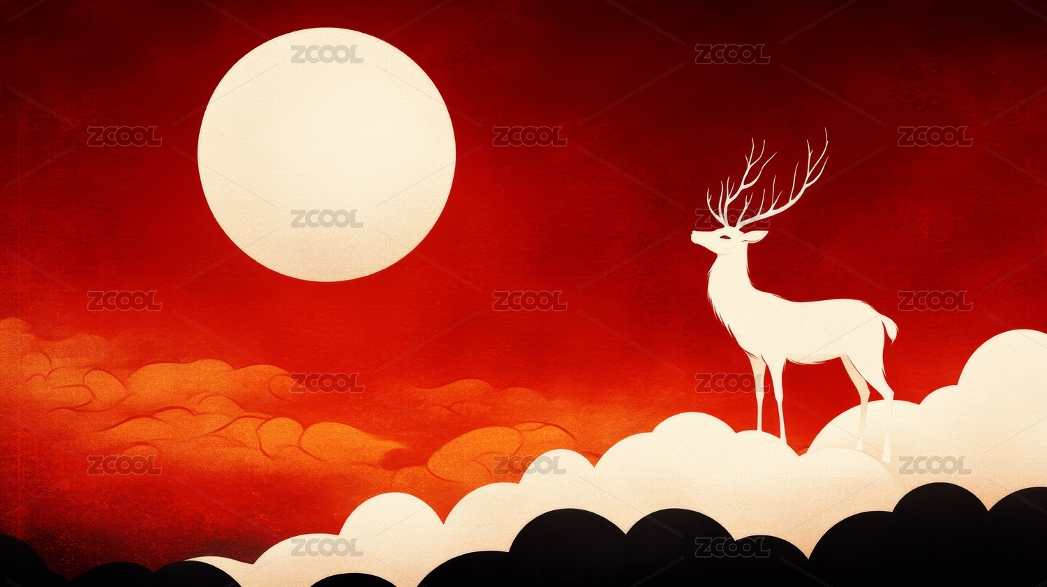 神鹿立于祥云之间