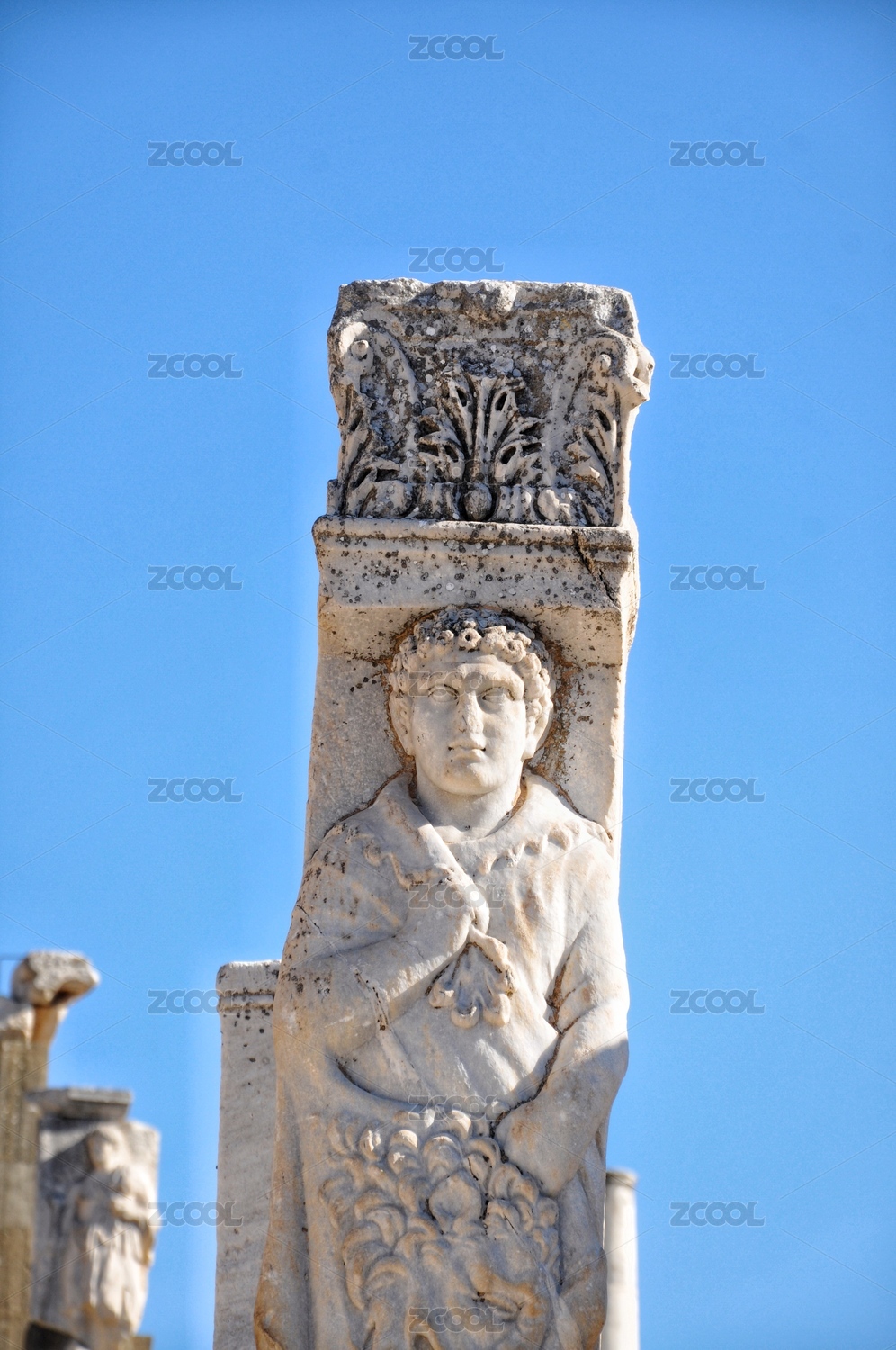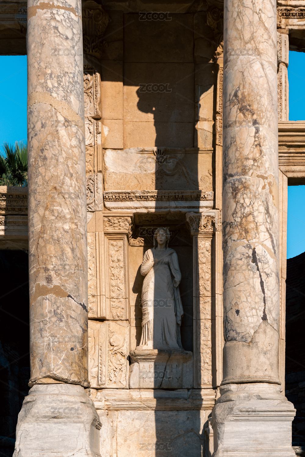 土耳其小亚细亚以弗所古城遗址塞尔苏斯图书馆的雕像