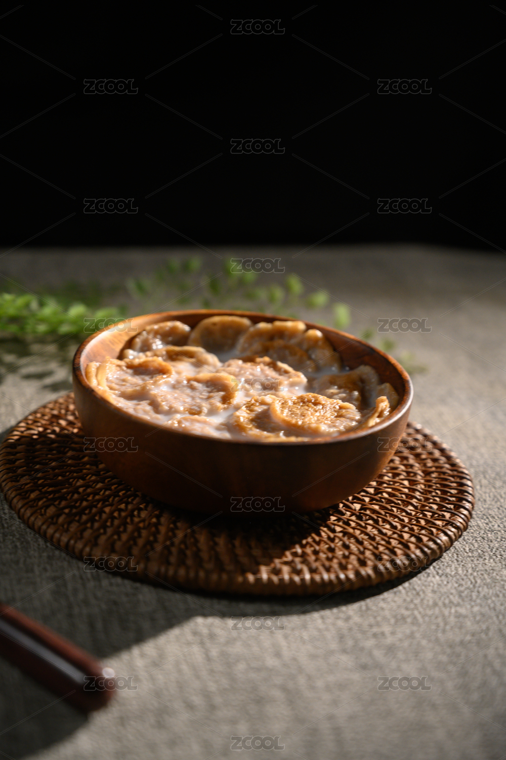 桌面上的碗里的美味可口的香菇鸡蛋汤