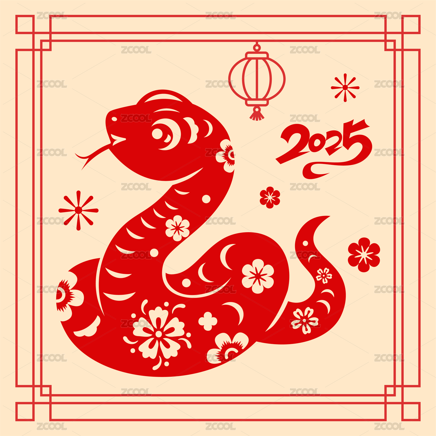 图标,传统,剪纸,春节,十二生肖,动物,壬寅年,复古,海报,蛇