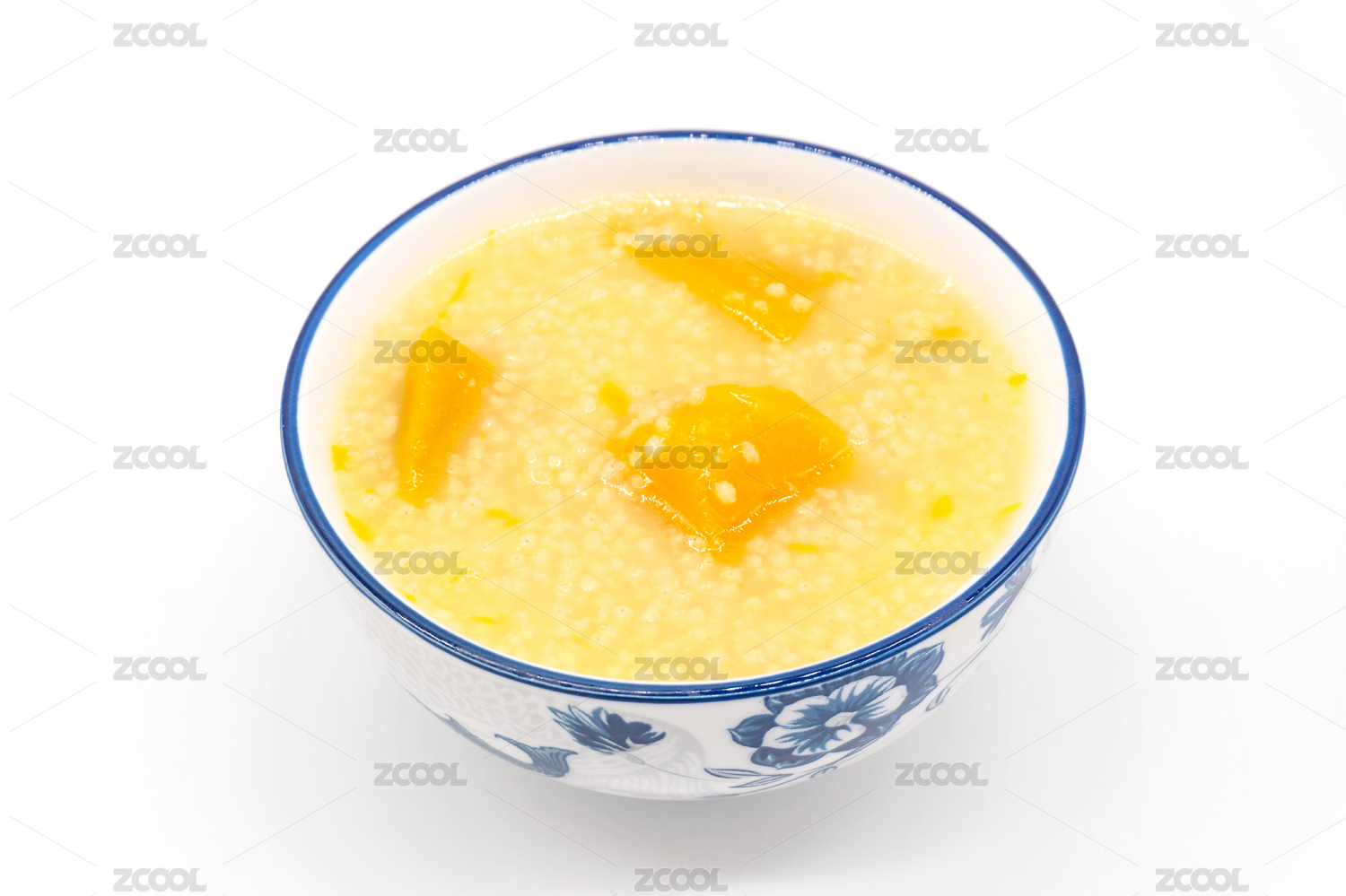 白背景一碗养生粥小米南瓜粥