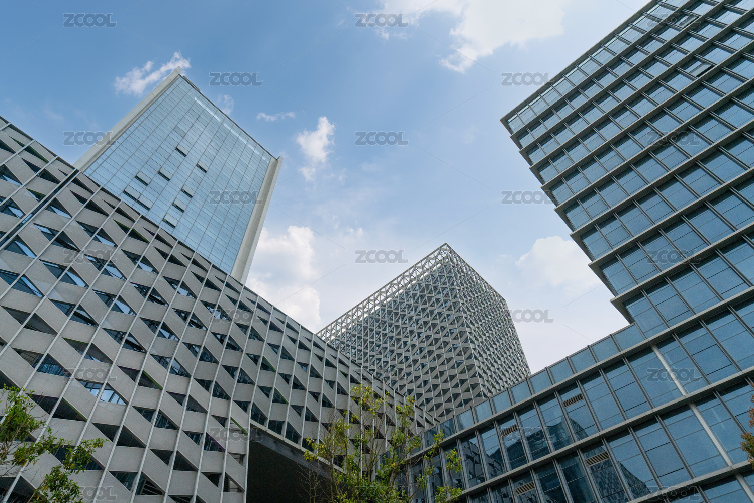 抽象的建筑摩天大楼的蓝色玻璃墙