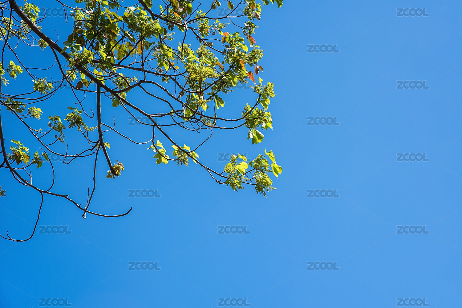 蓝天下生长的树枝