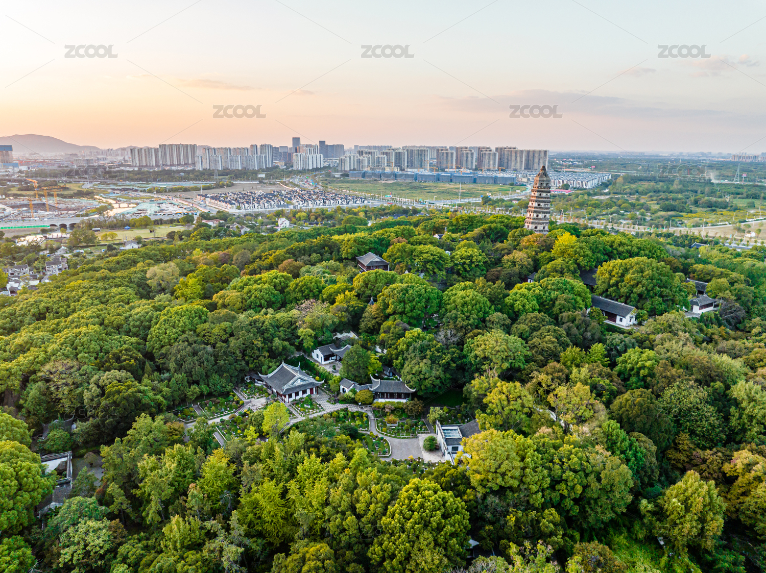 中国江苏苏州虎丘风景名胜区航拍