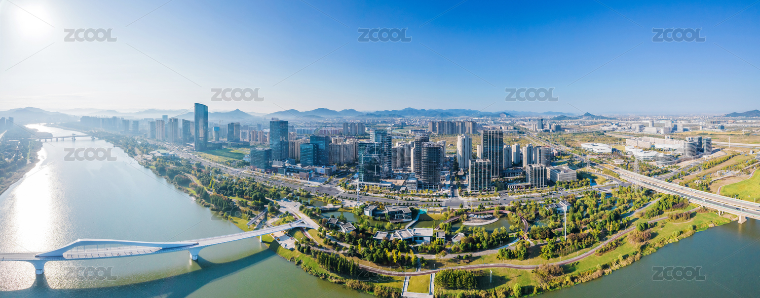 上虞城市风光航拍全景