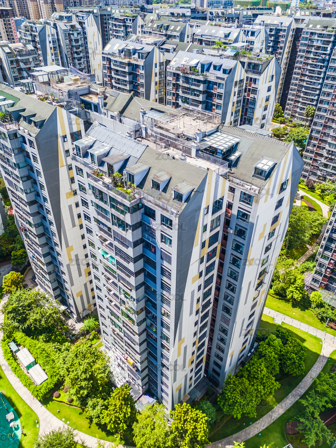 城市房地产楼盘商品房群楼小区垂直航拍