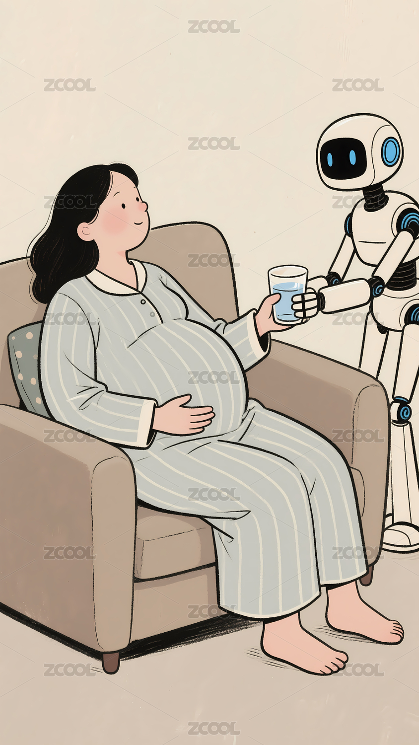 休闲,治愈,清新,简笔画,女孩,女人,插画,生活,描边,孕妇