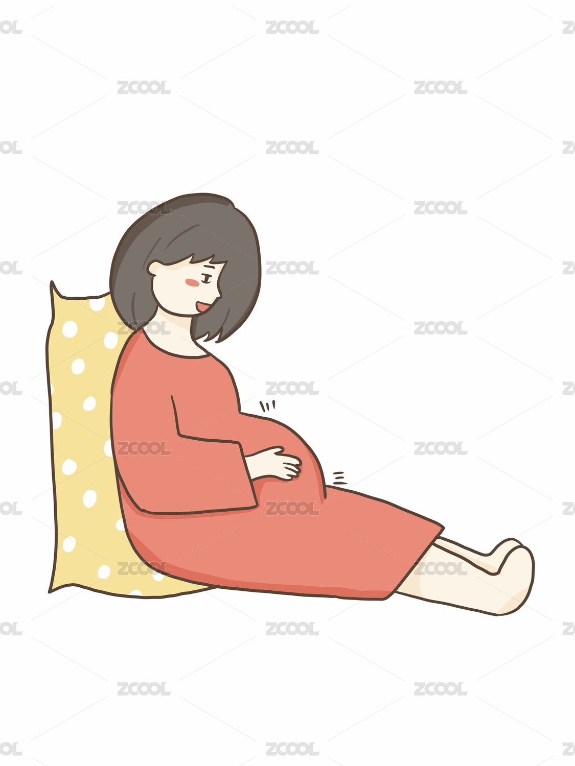 年轻妈妈坐在地上抚摸肚子中的宝宝插画人物