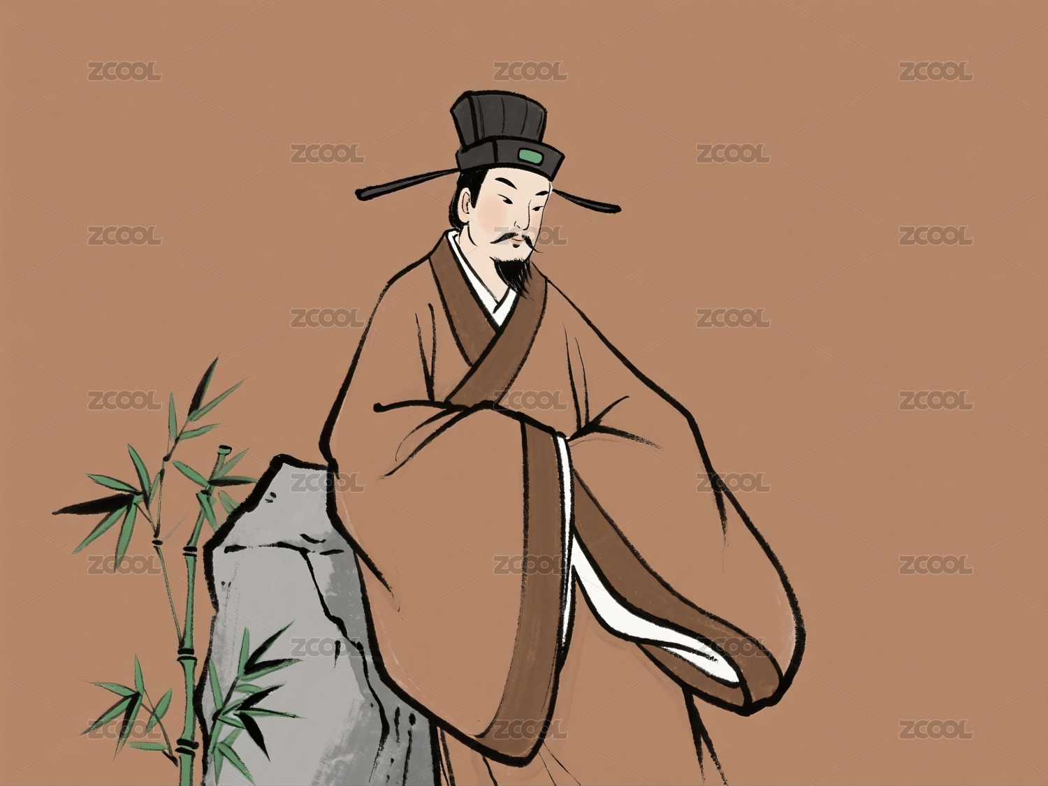 古代人物站立棕色服饰画像