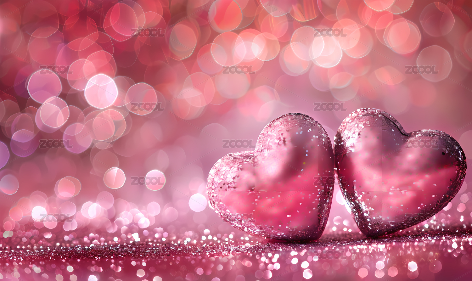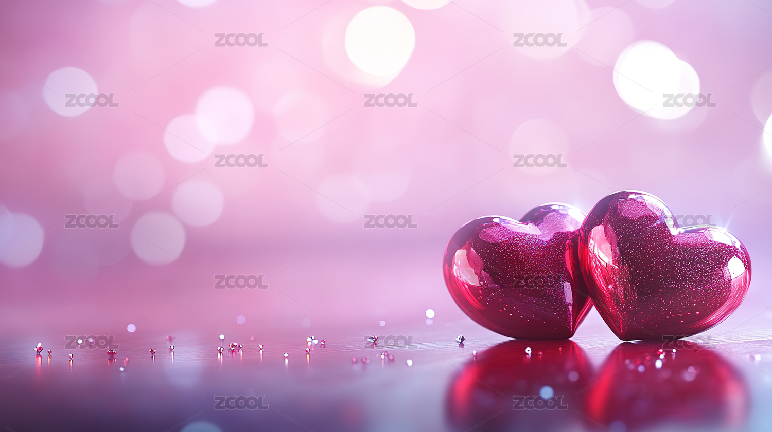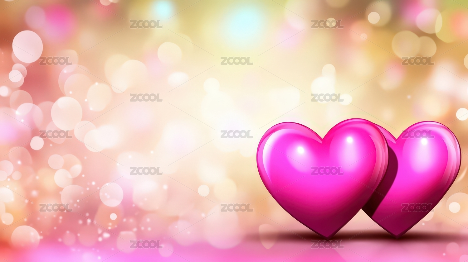 两颗爱心背景梦幻情人节主题