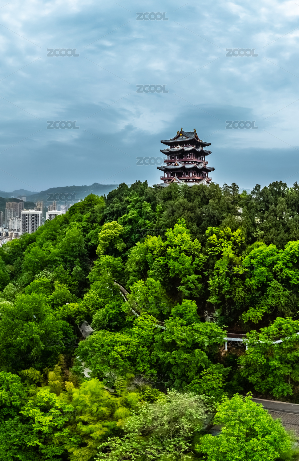 中国四川省巴中市南龛山飞霞阁园林建筑