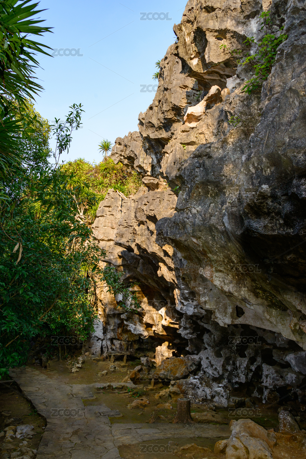 山谷中的幽静石头小路台阶石壁阶梯山石嶙峋