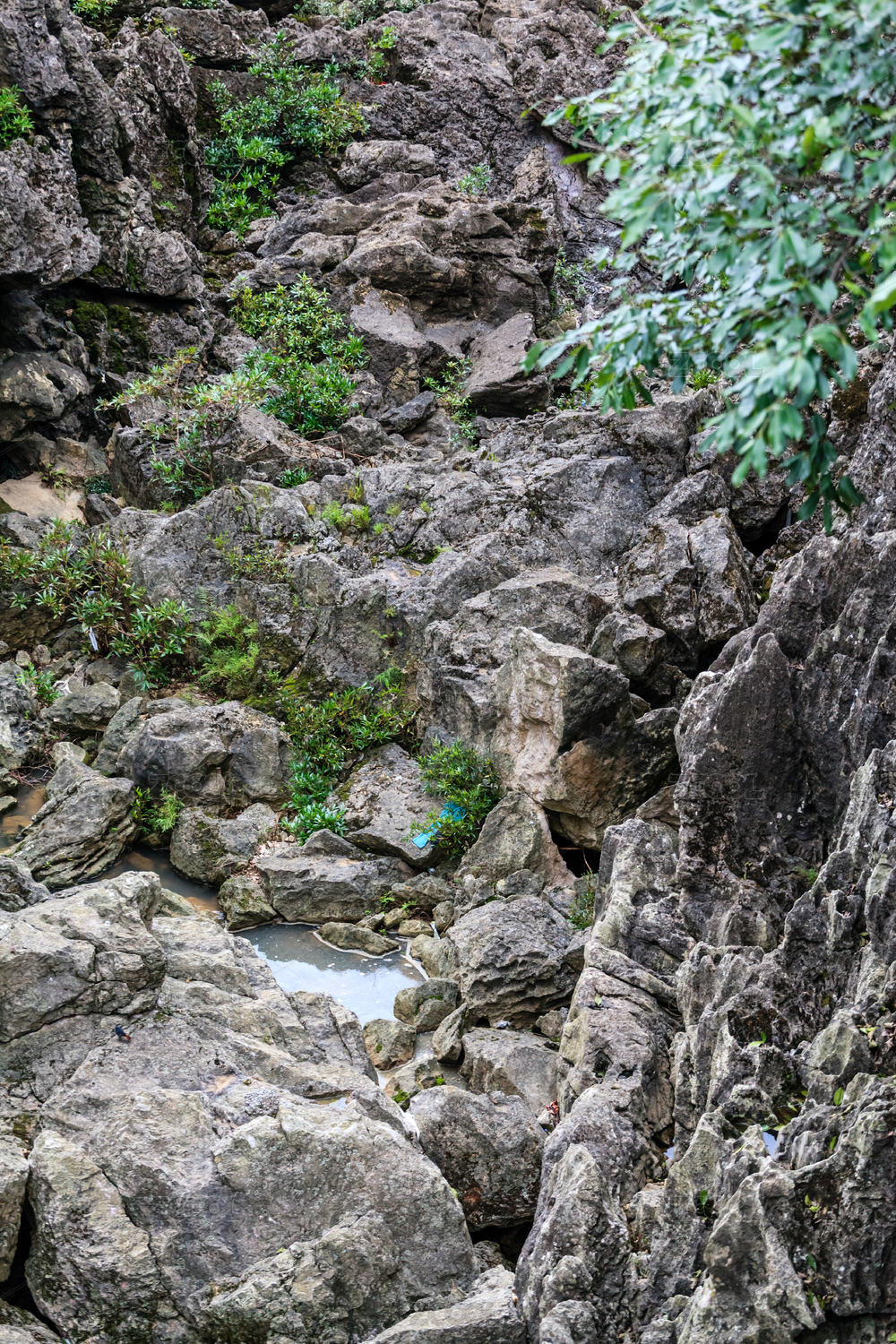 广西桂林的石头山峰局部特写和绿色植被