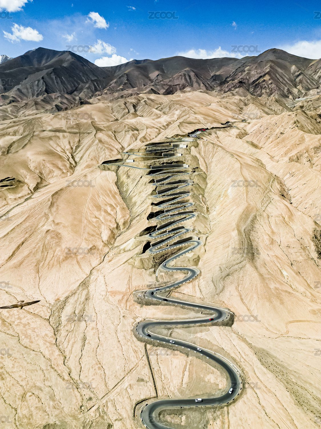中国新疆喀什地区塔什库尔干盘龙古道航拍风