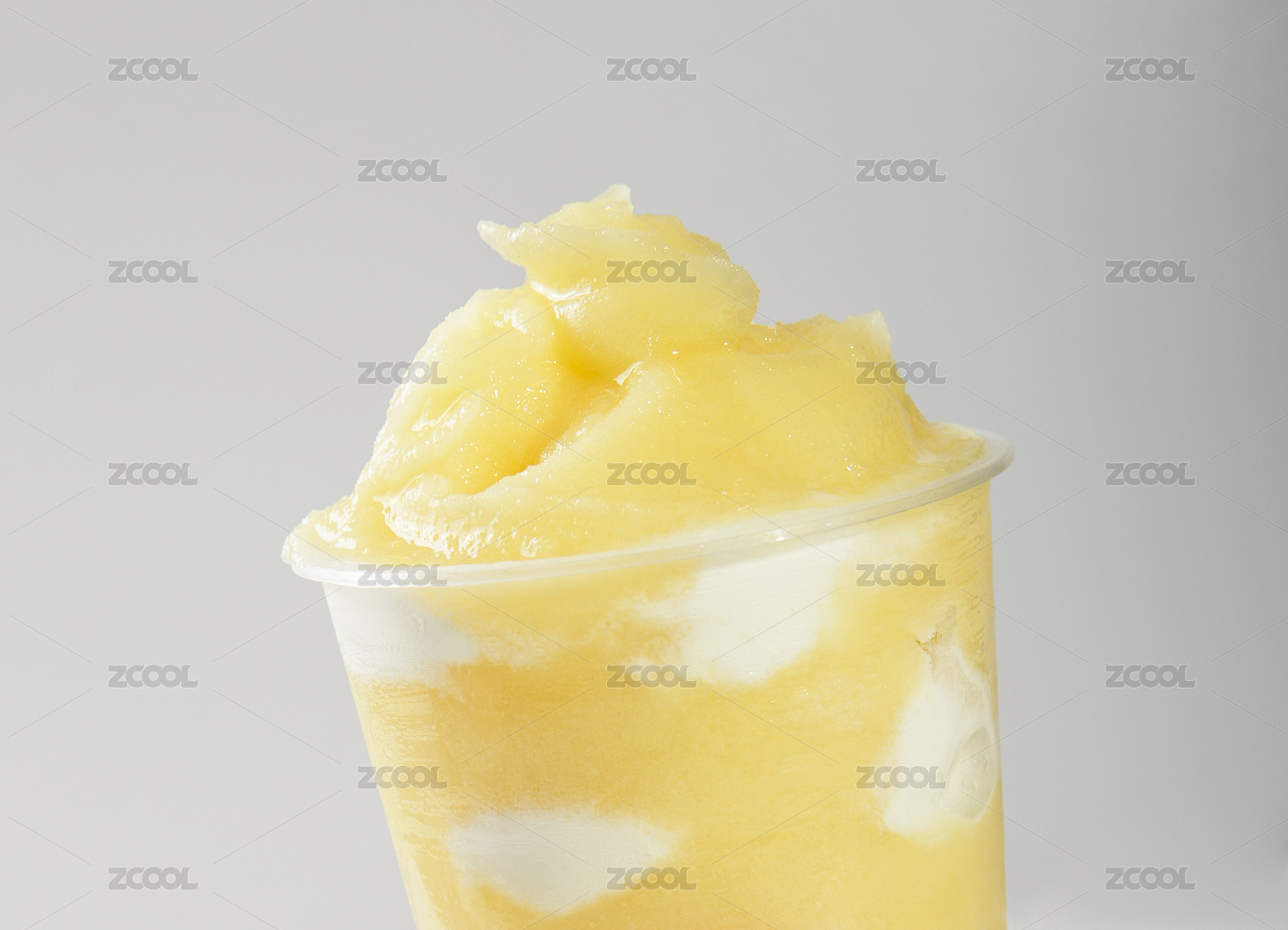 柠檬味的冰沙与奶昔在杯子中的局部特写镜头