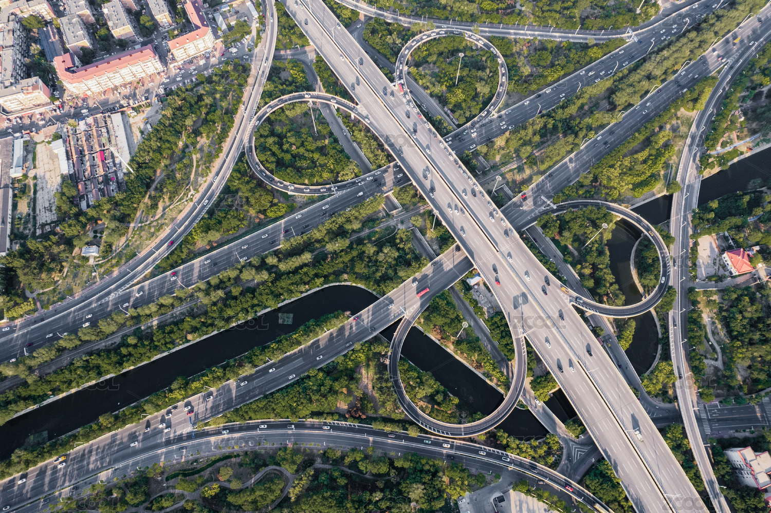 航拍郑州中州大道金水路互通立交桥高架纵横