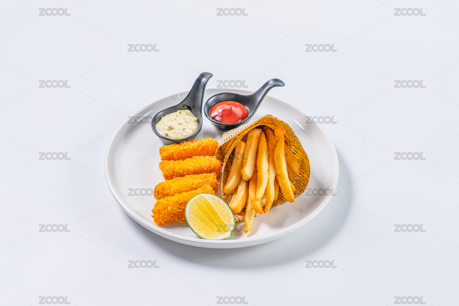 桌面上的盘子里的美味可口的酥炸皮皮虾