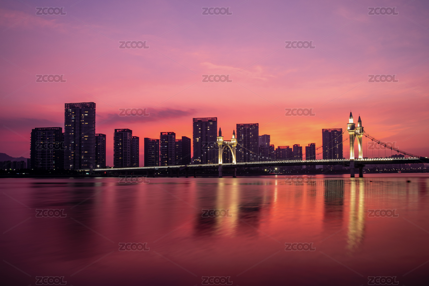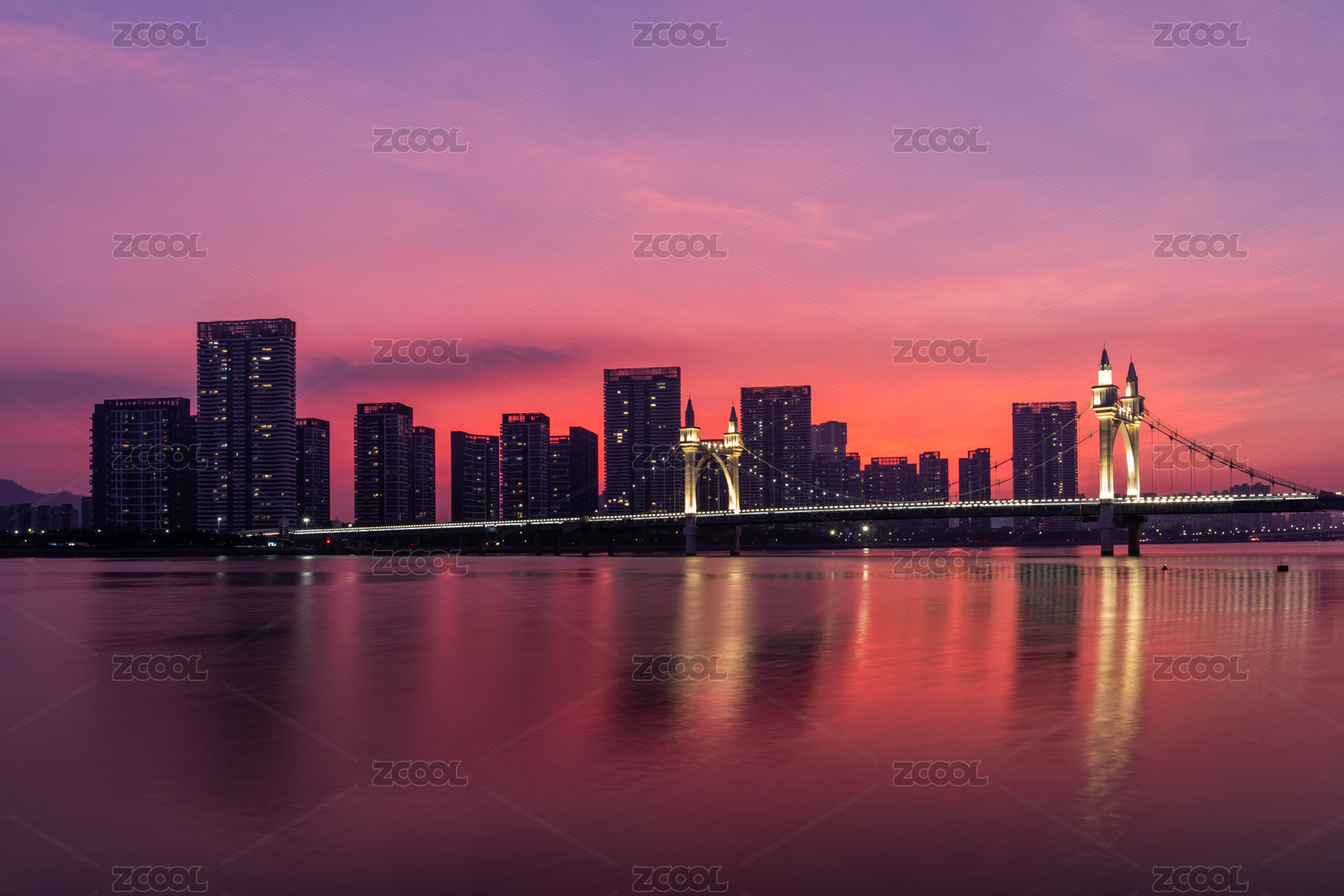 中国广东省珠海市白石桥城市风光晚霞航拍