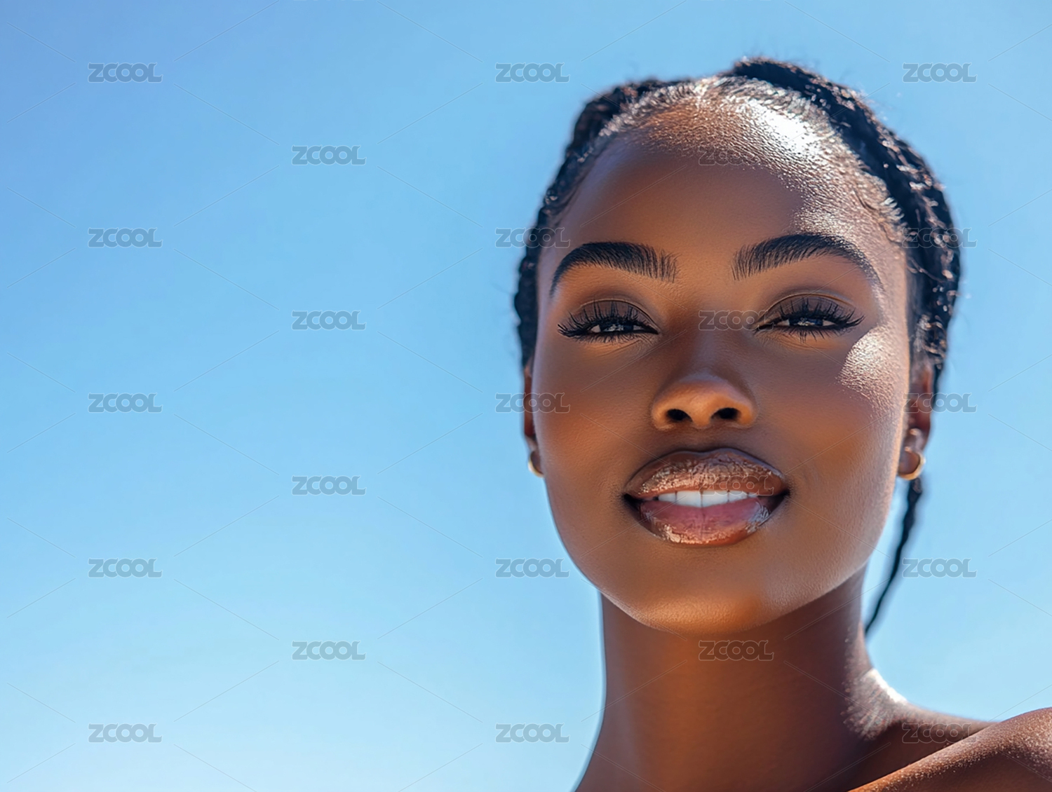 美女在蓝天背景下的特写照片