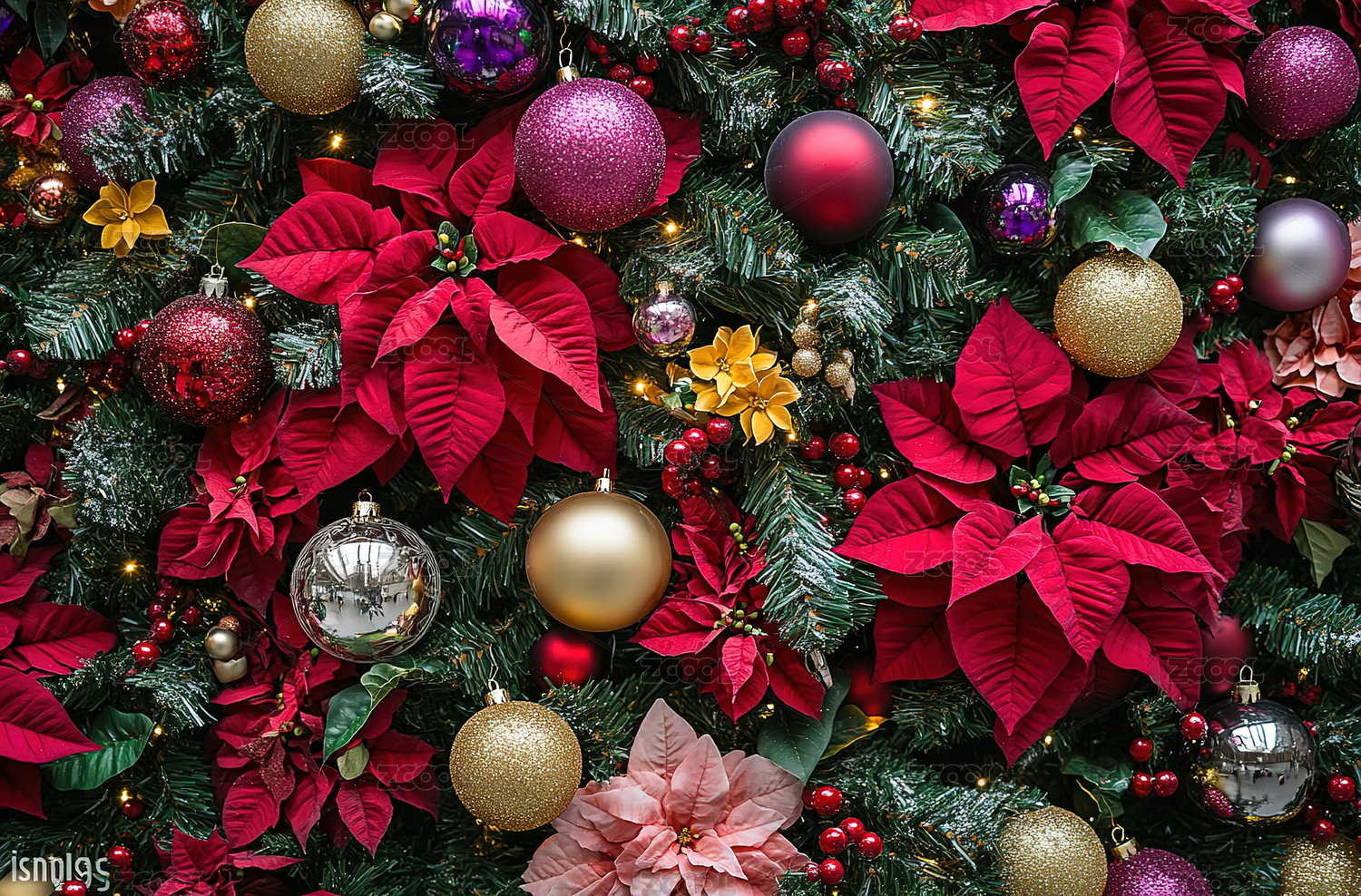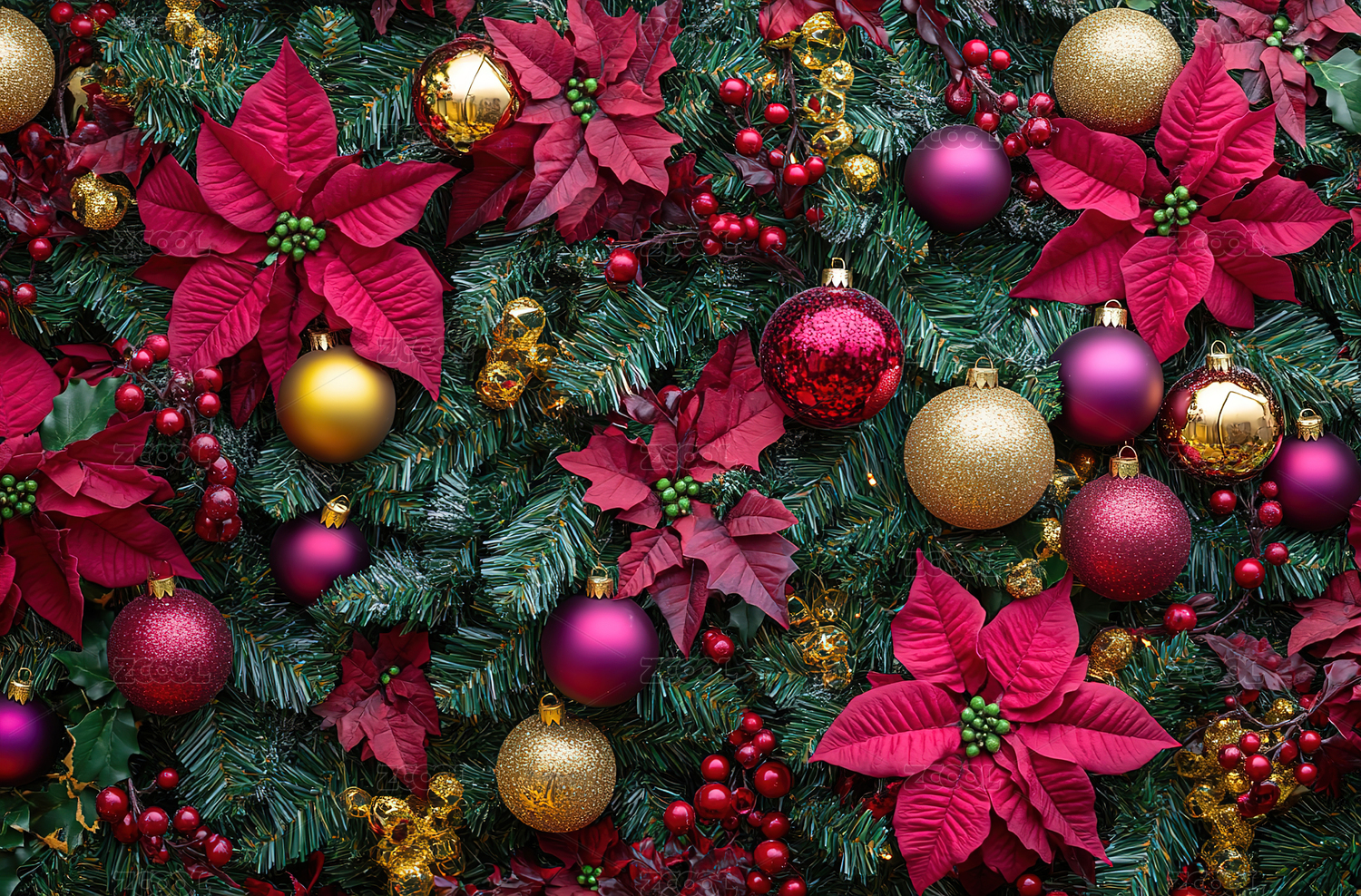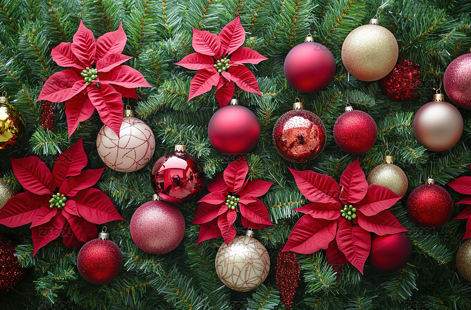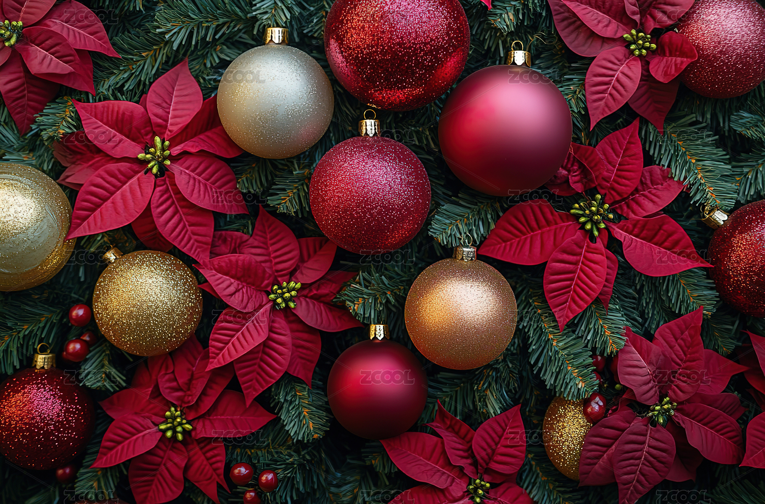 悬挂在圣诞树上的红色磨砂质感圣诞球特写