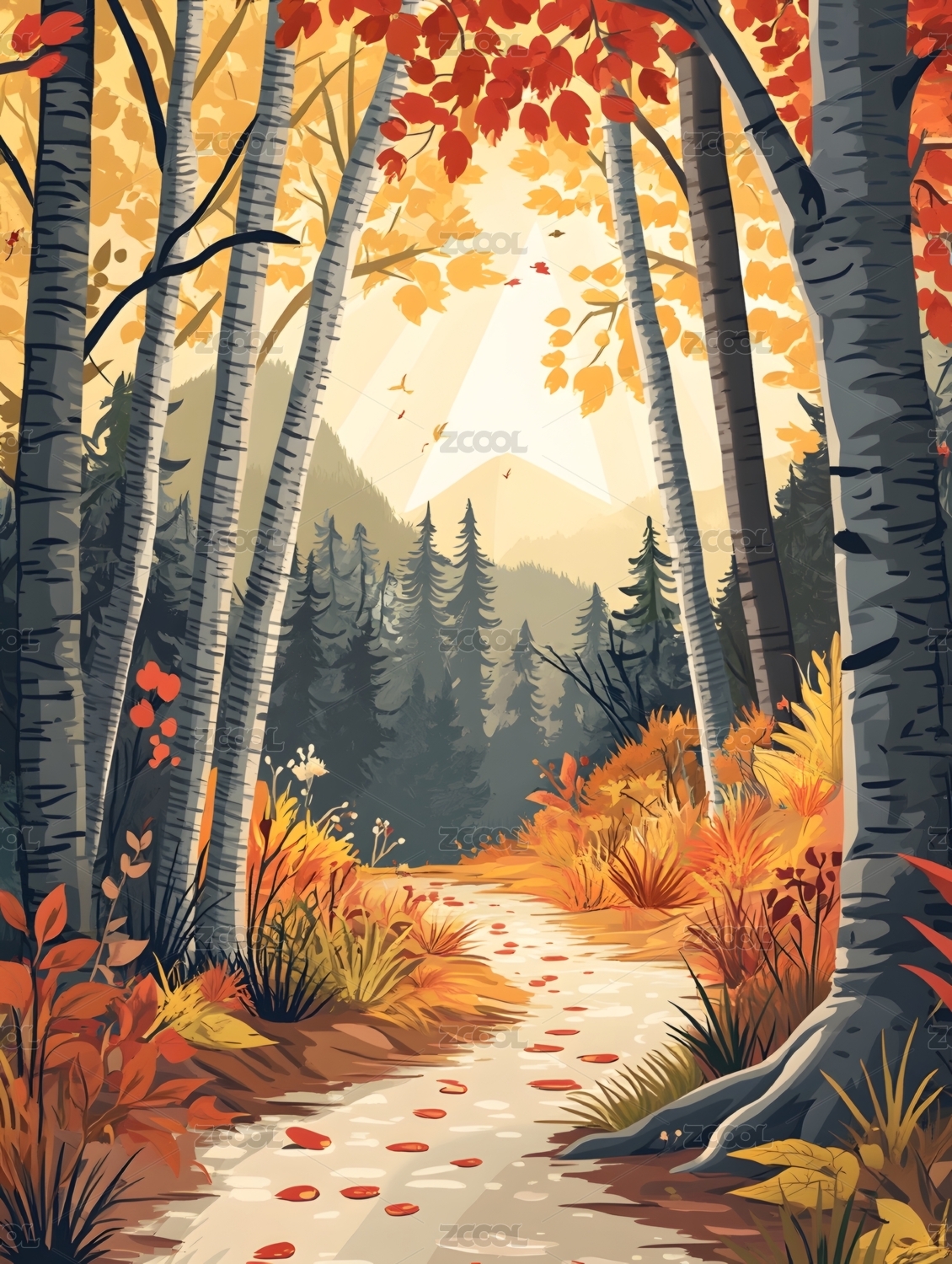 艺术,自然,风景,橙色,设计,图形,数字,插画,绿色,天空