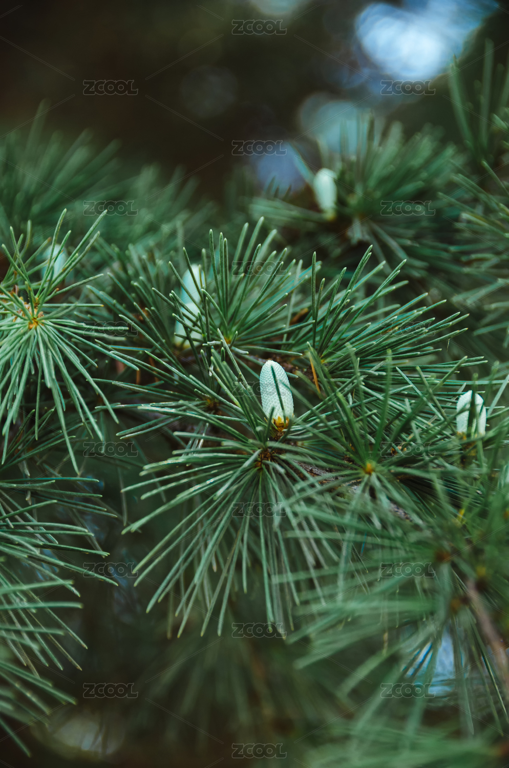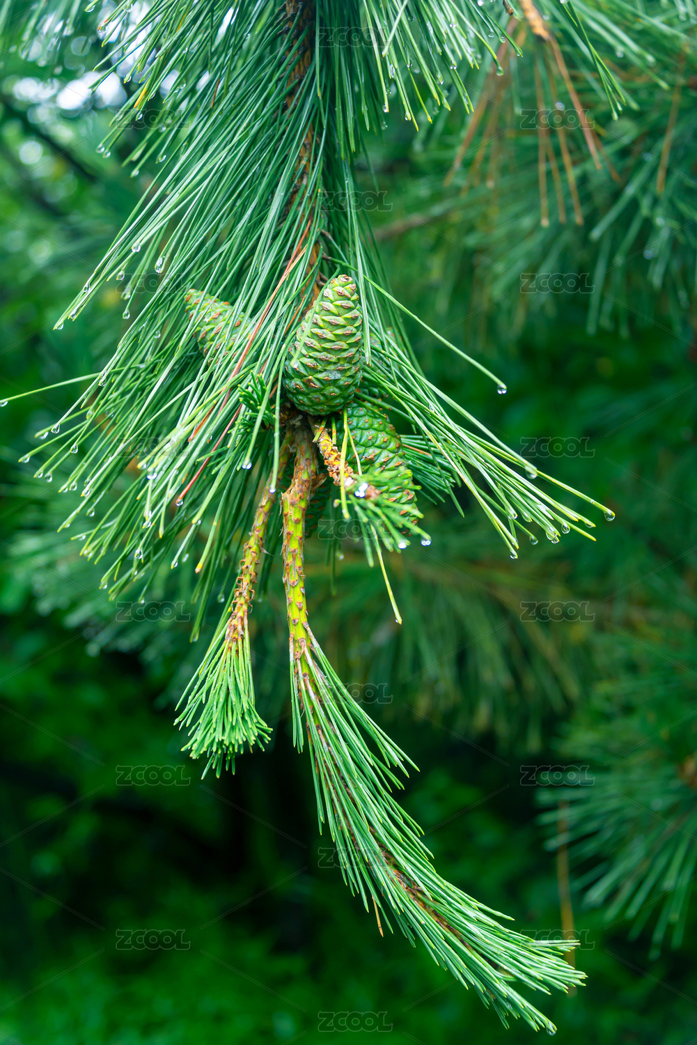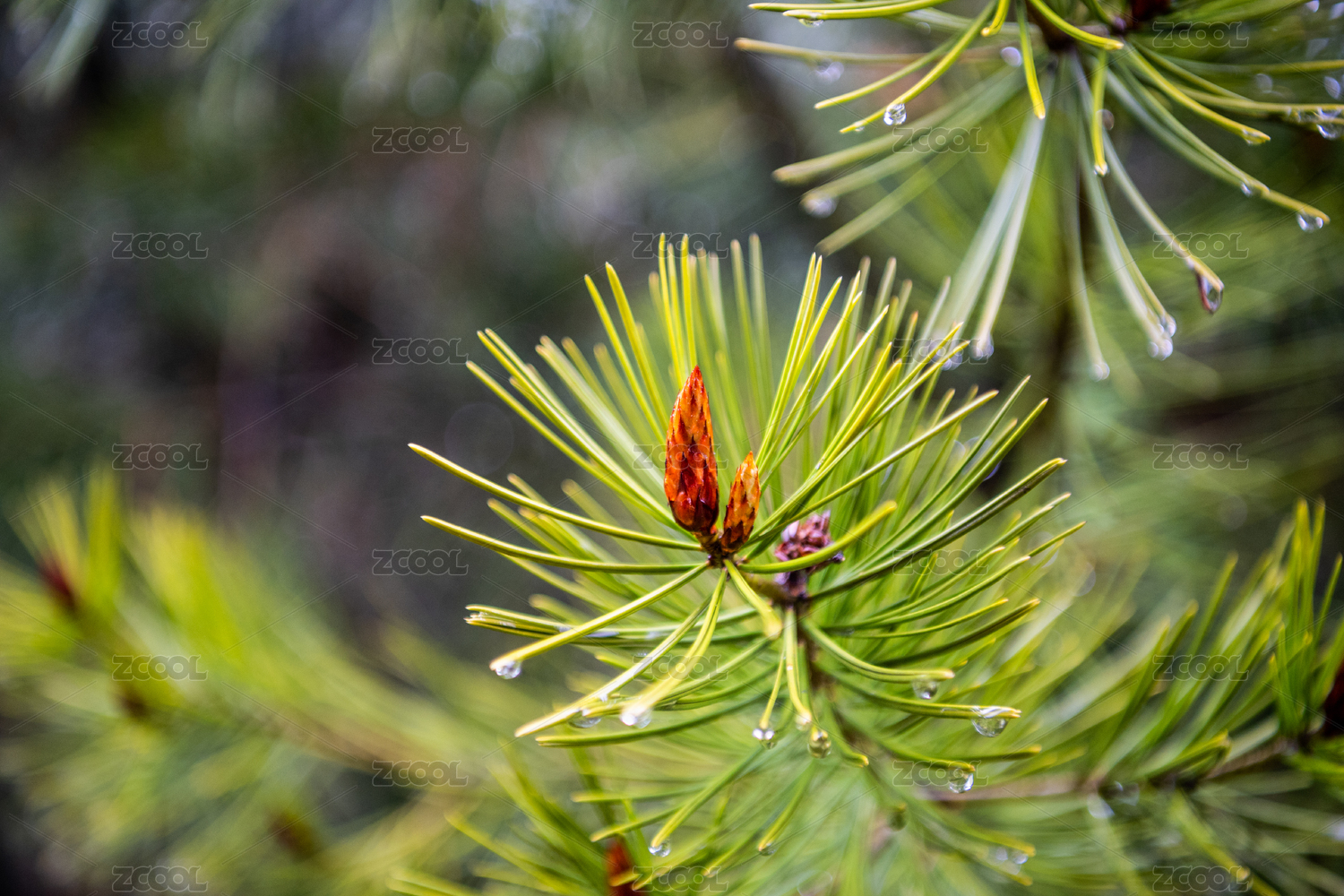 雨中松针带露特写