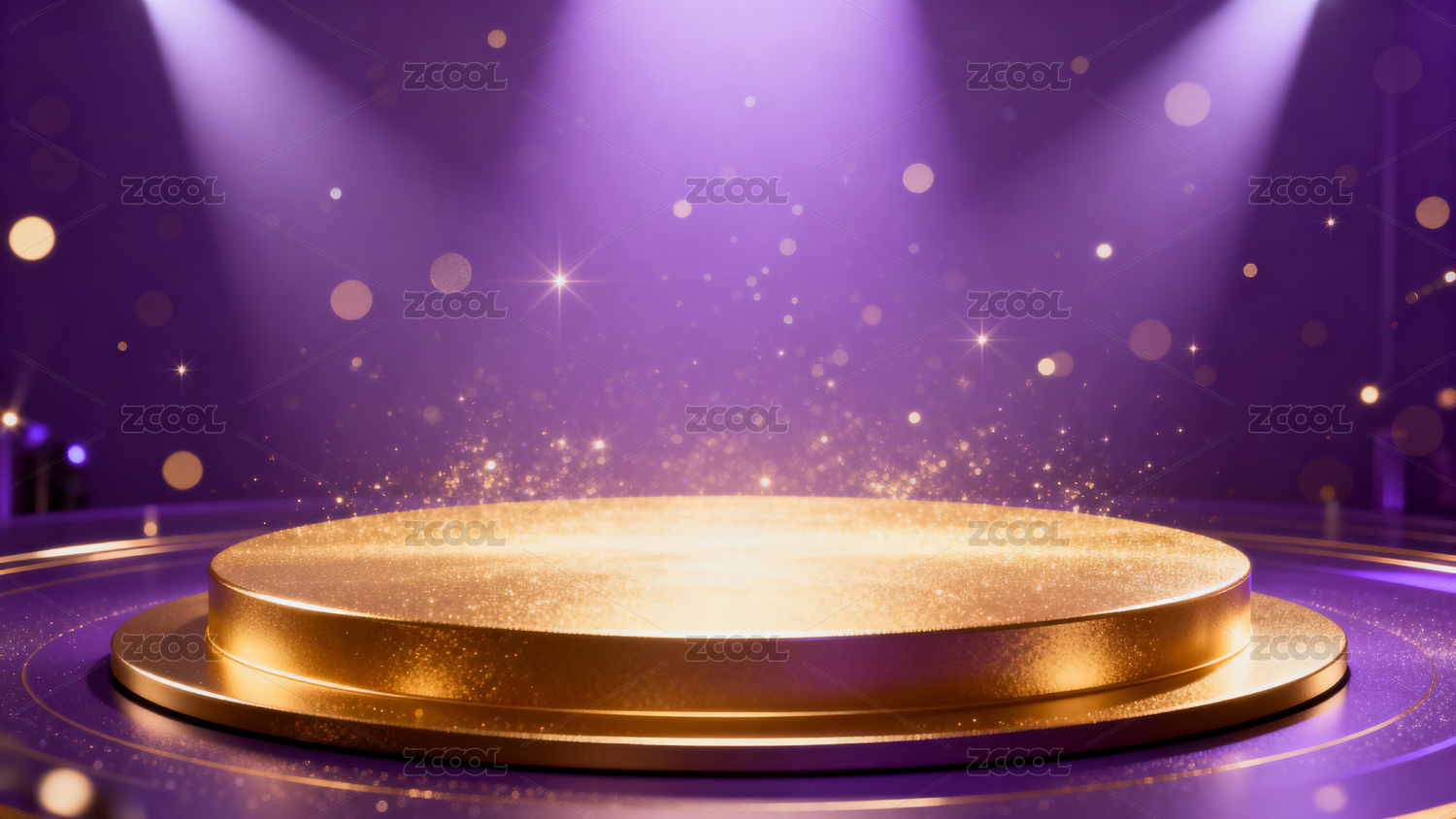 金色舞台在紫色聚光灯下闪耀