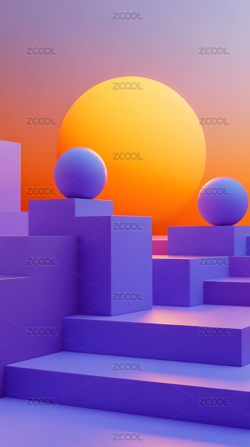 紫色橙色背景下的3D展台