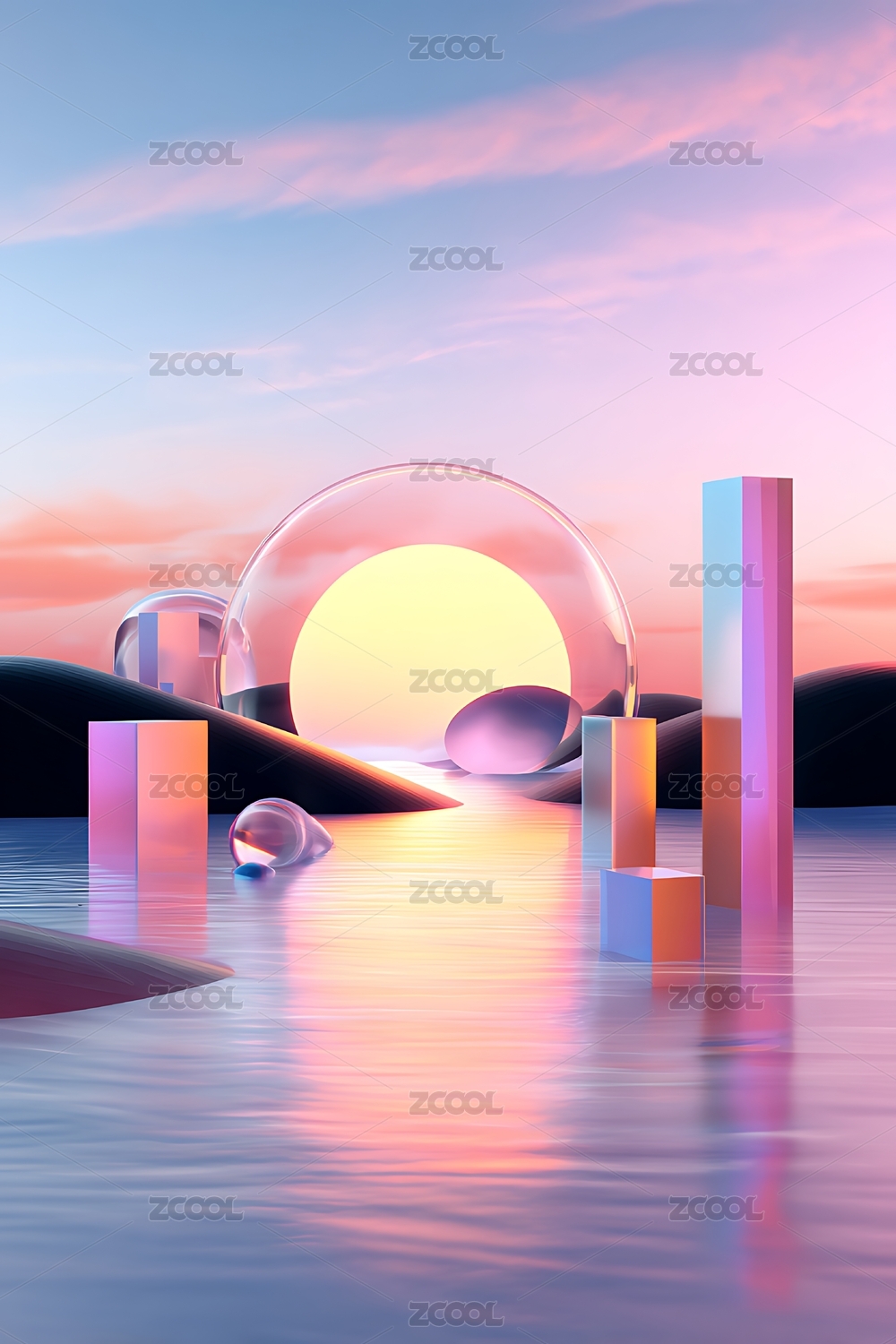 奇幻场景水面日落