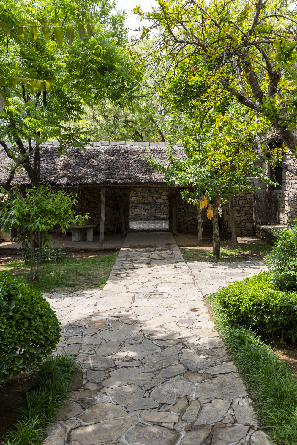 中国山东省临沂市沂南县沂蒙山村石墙院落茅草门罩式院门
