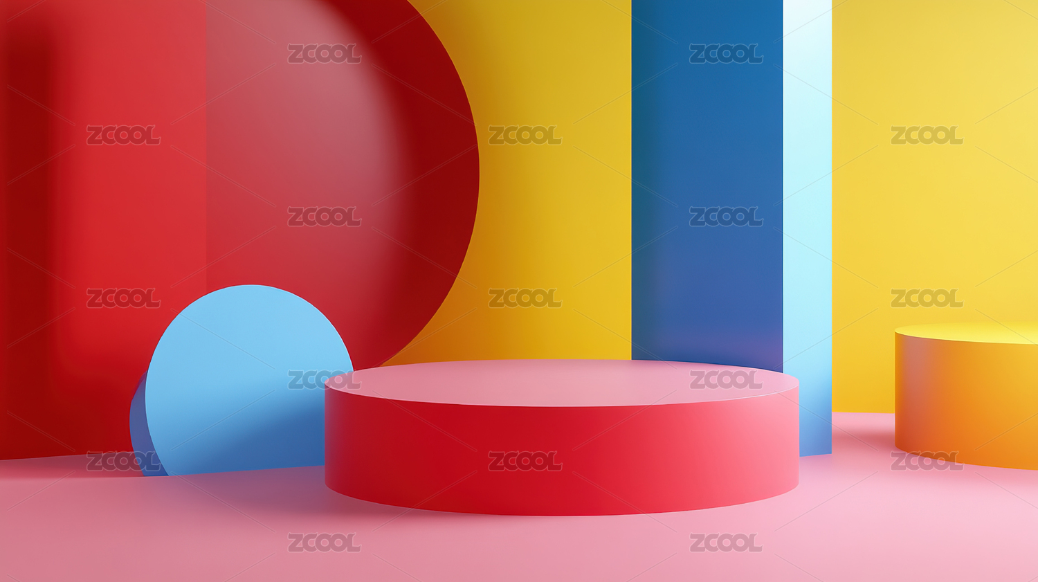 柔和色彩几何造型场景