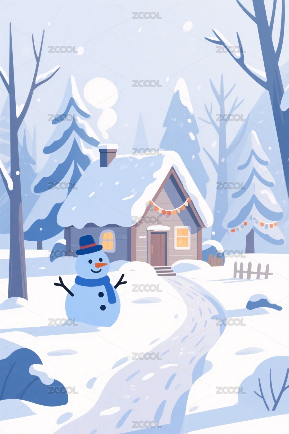 自然,冬天,雪,房屋,树,乡村,季节,天空,插画,圣诞节