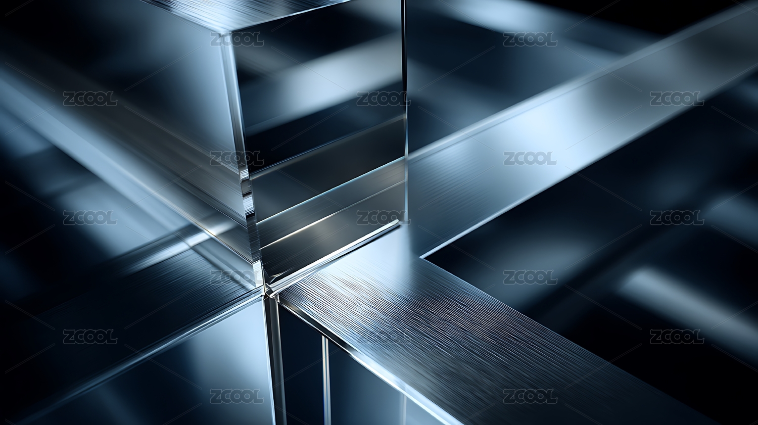 蓝色金属方块光影交错