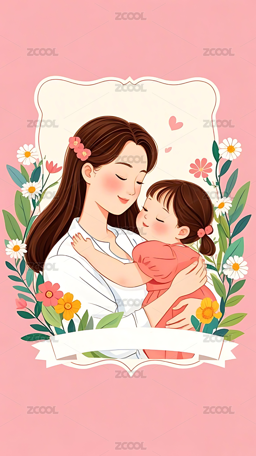 母亲节妈妈抱着萌娃竖版插画矢量图