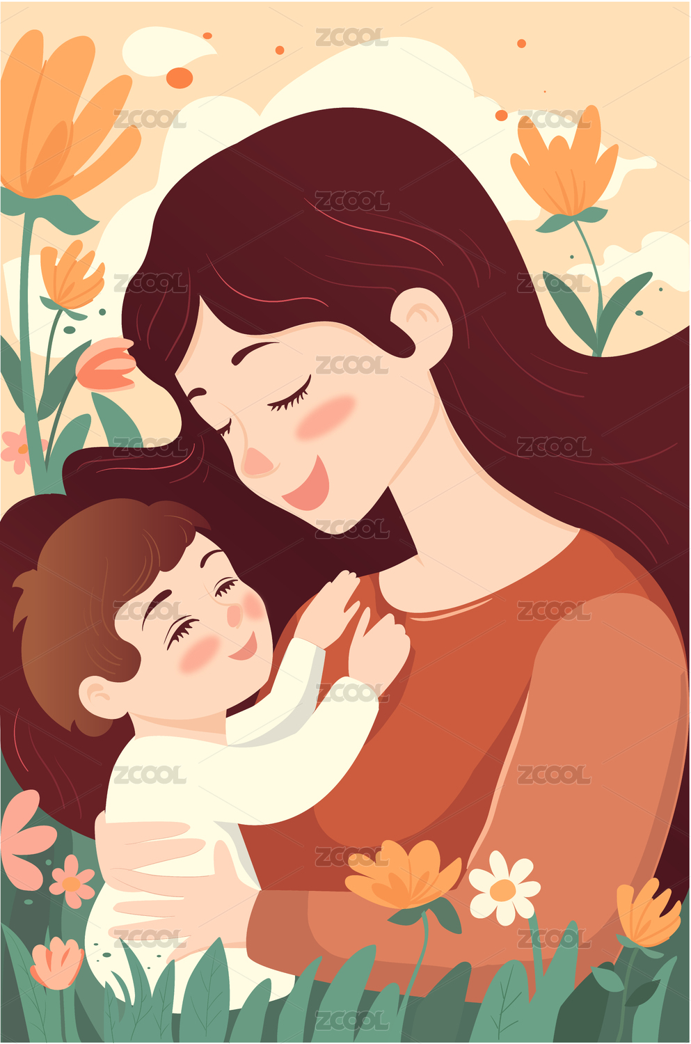 相拥的母子母亲节插画